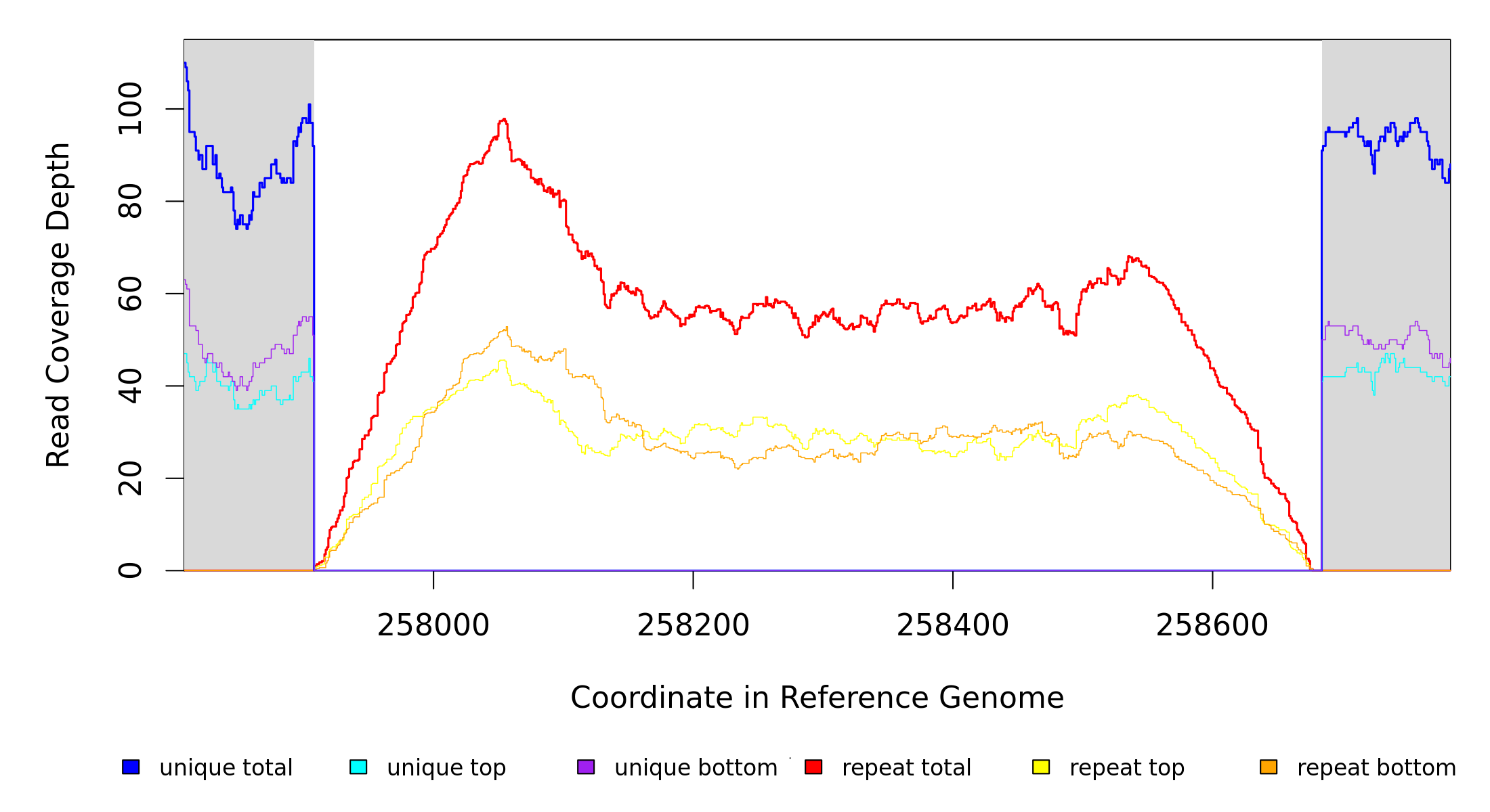 | seq id | start | end | size | ←reads | reads→ | gene | description | |||