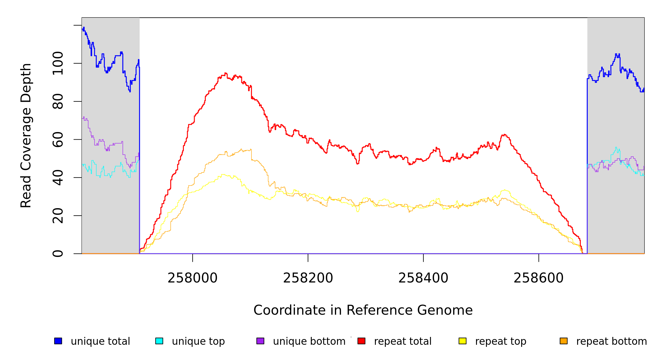 | seq id | start | end | size | ←reads | reads→ | gene | description | |||