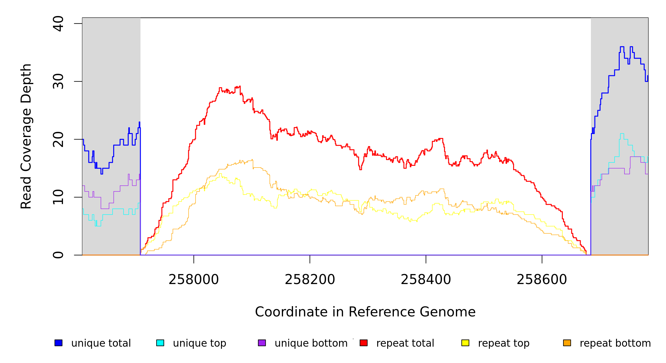 | seq id | start | end | size | ←reads | reads→ | gene | description | |||