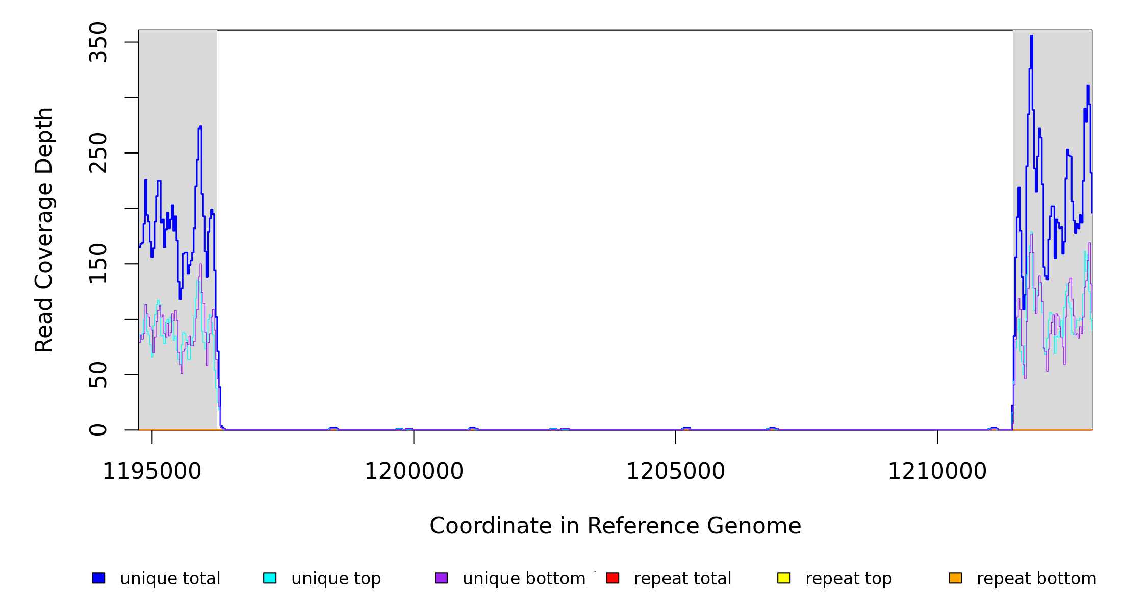 | seq id | start | end | size | ←reads | reads→ | gene | description | |||