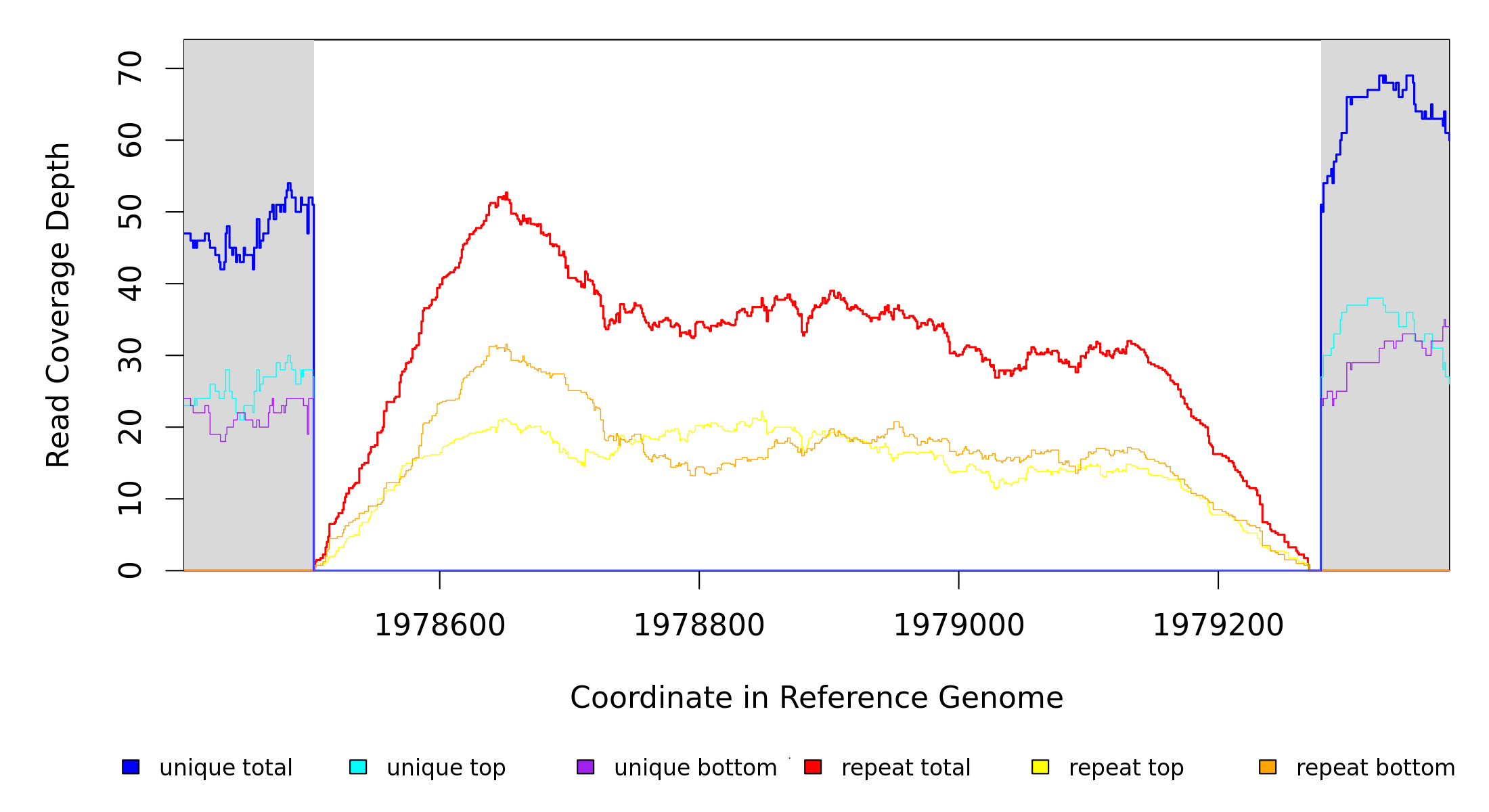 | seq id | start | end | size | ←reads | reads→ | gene | description | |||