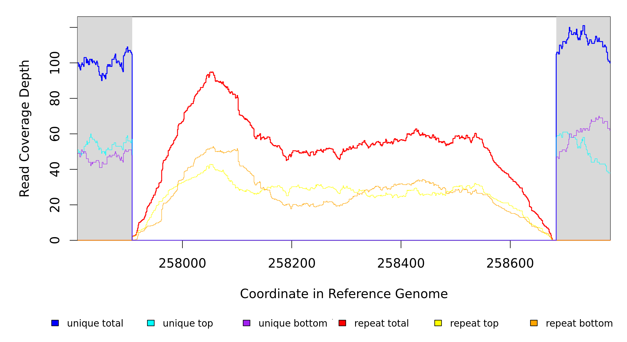 | seq id | start | end | size | ←reads | reads→ | gene | description | |||