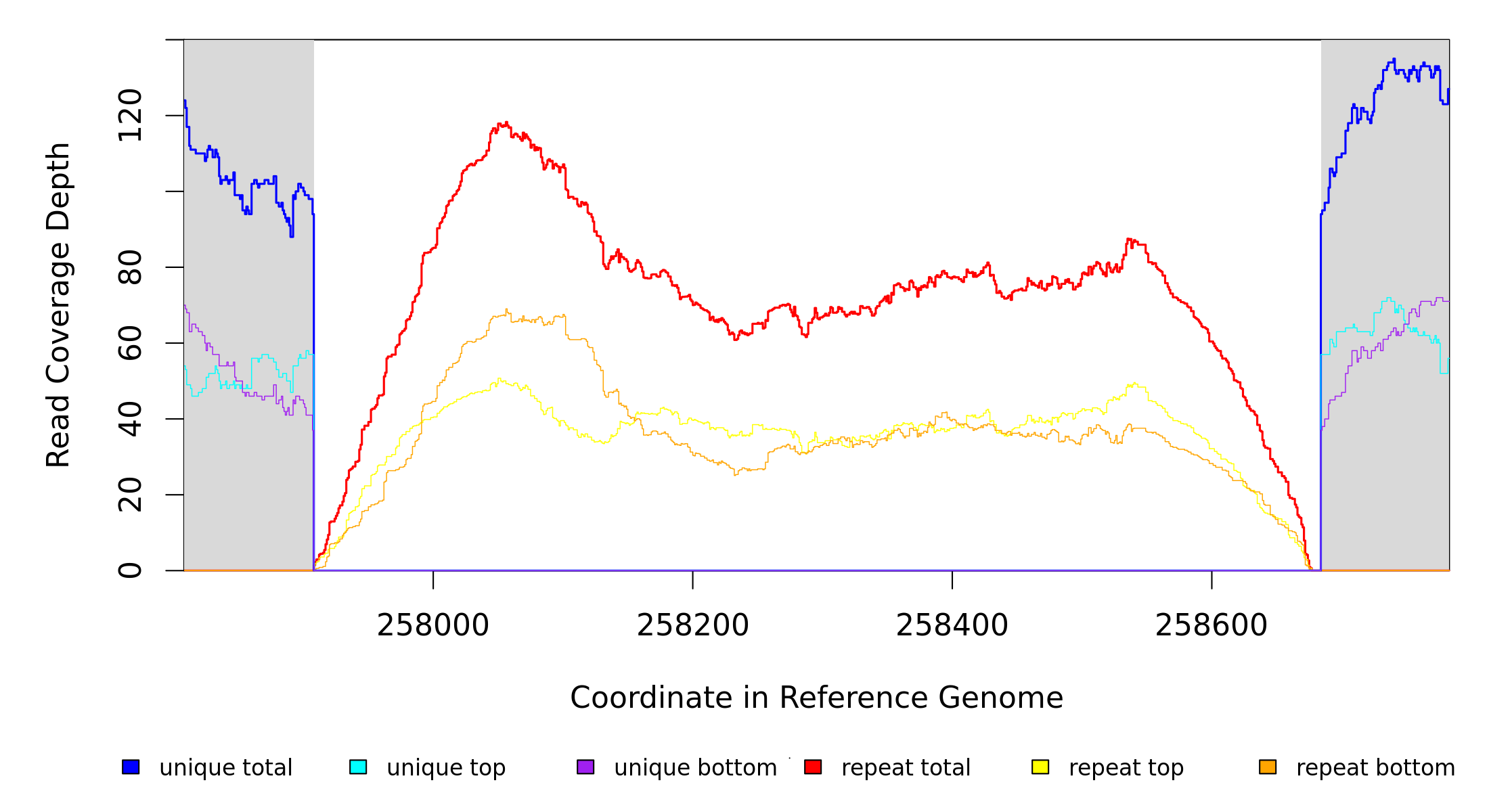 | seq id | start | end | size | ←reads | reads→ | gene | description | |||