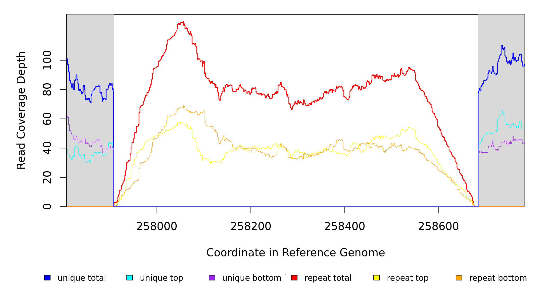 | seq id | start | end | size | ←reads | reads→ | gene | description | |||