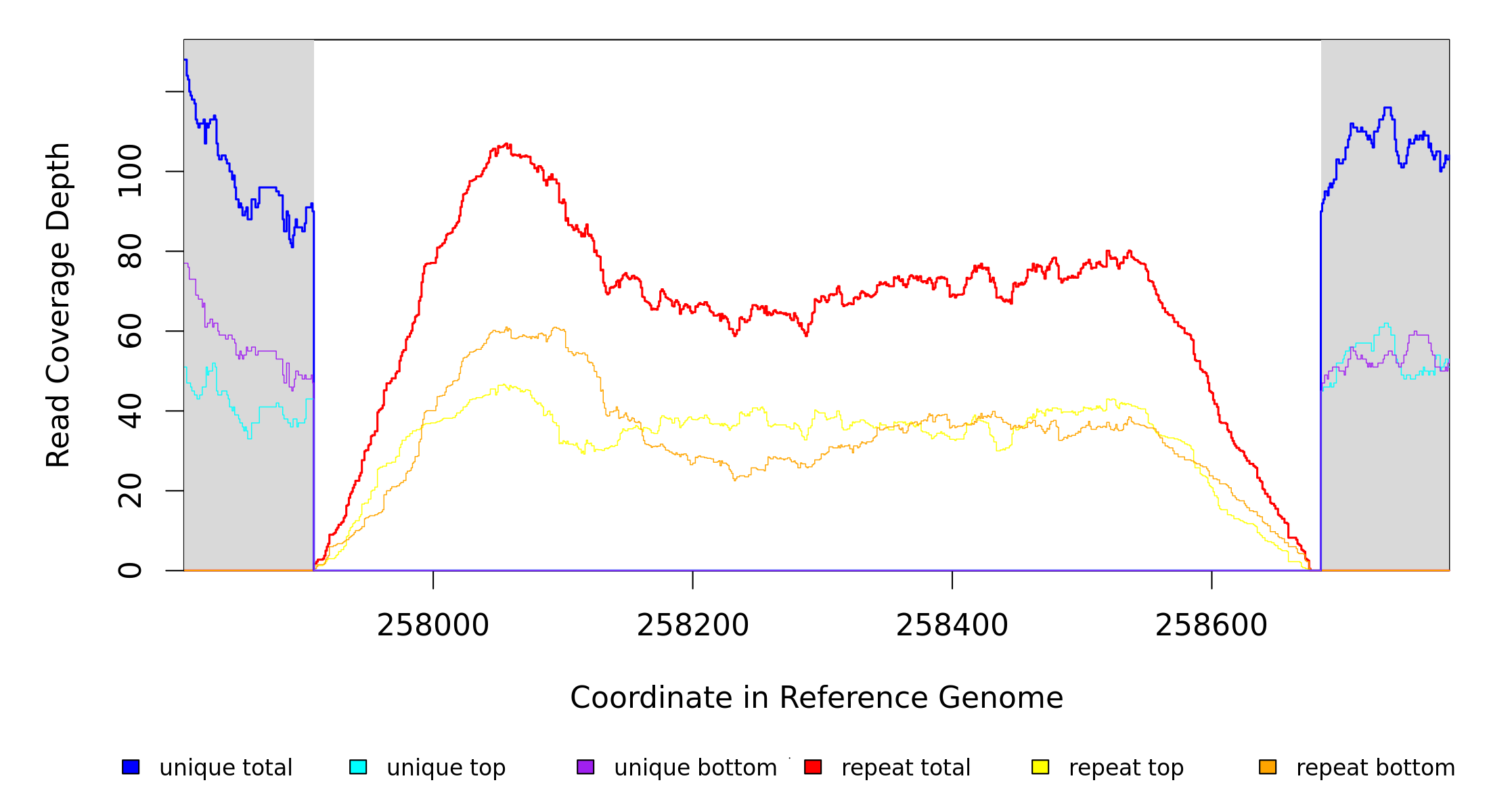 | seq id | start | end | size | ←reads | reads→ | gene | description | |||