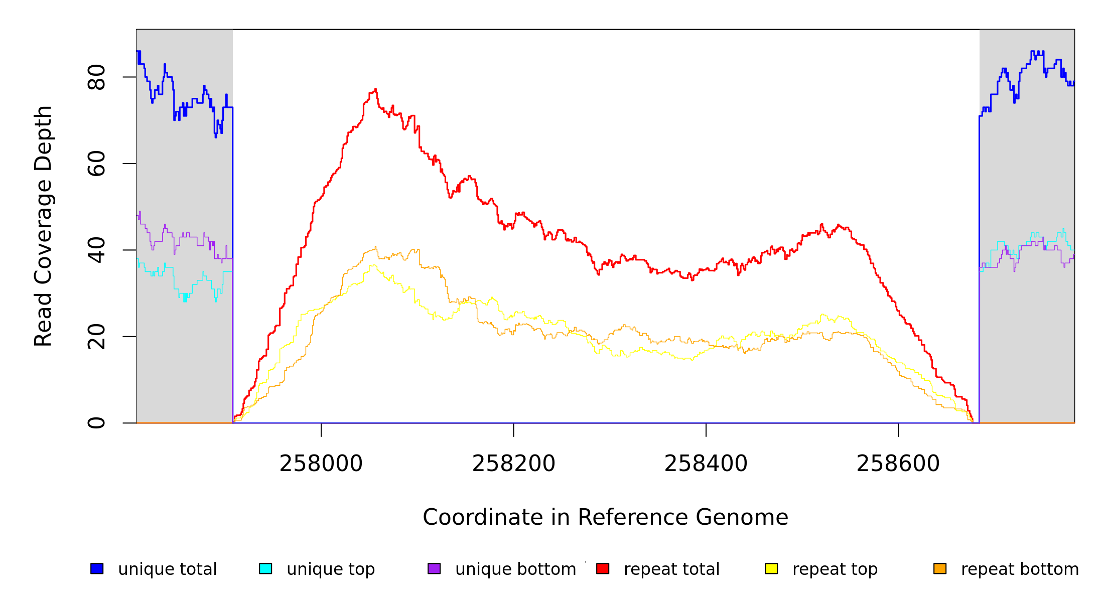 | seq id | start | end | size | ←reads | reads→ | gene | description | |||