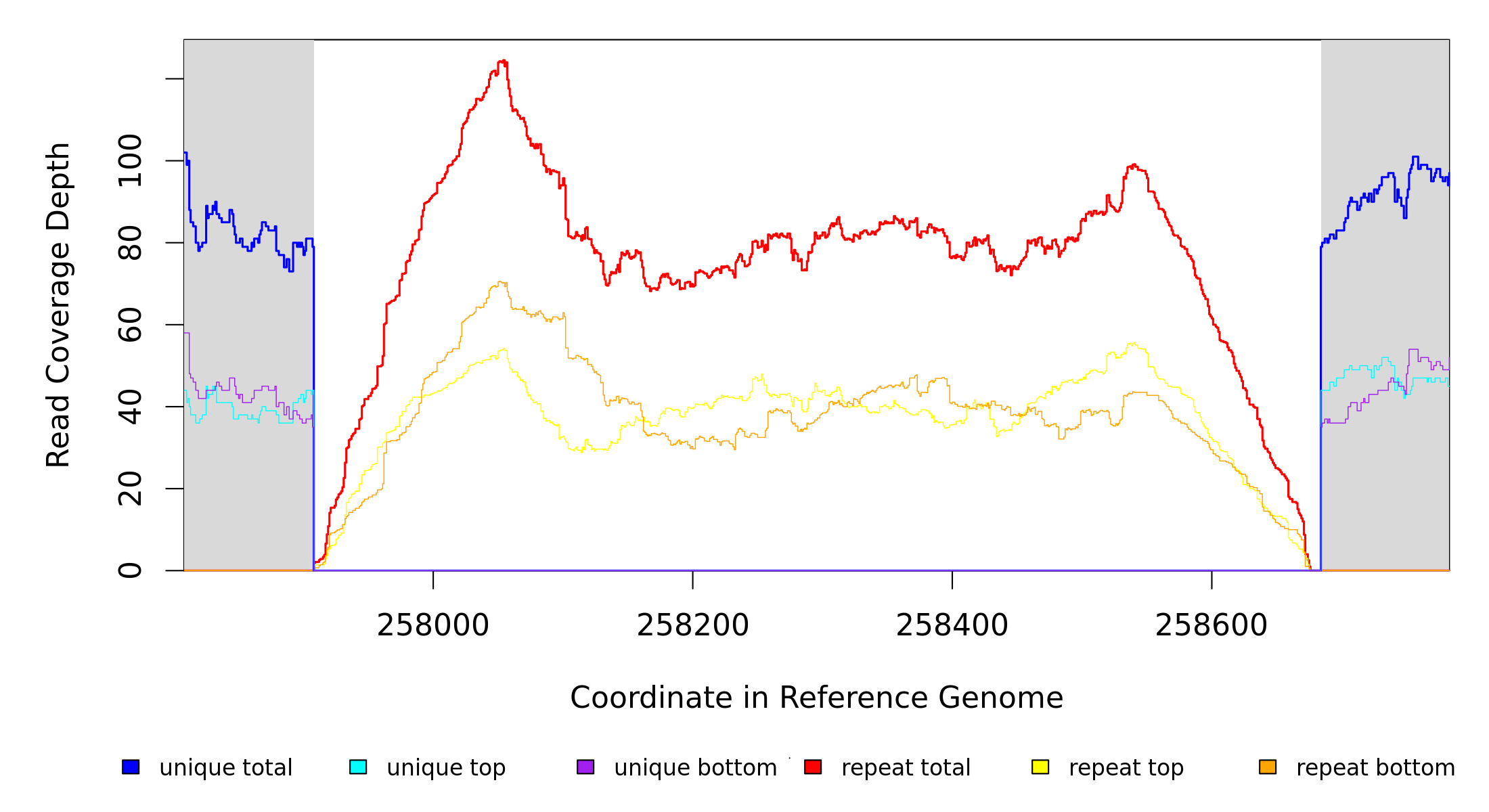 | seq id | start | end | size | ←reads | reads→ | gene | description | |||