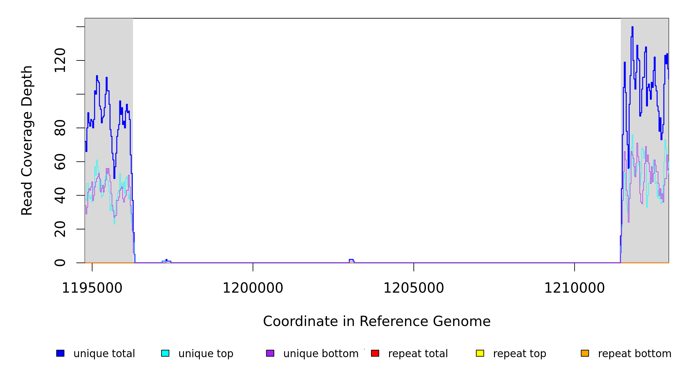 | seq id | start | end | size | ←reads | reads→ | gene | description | |||