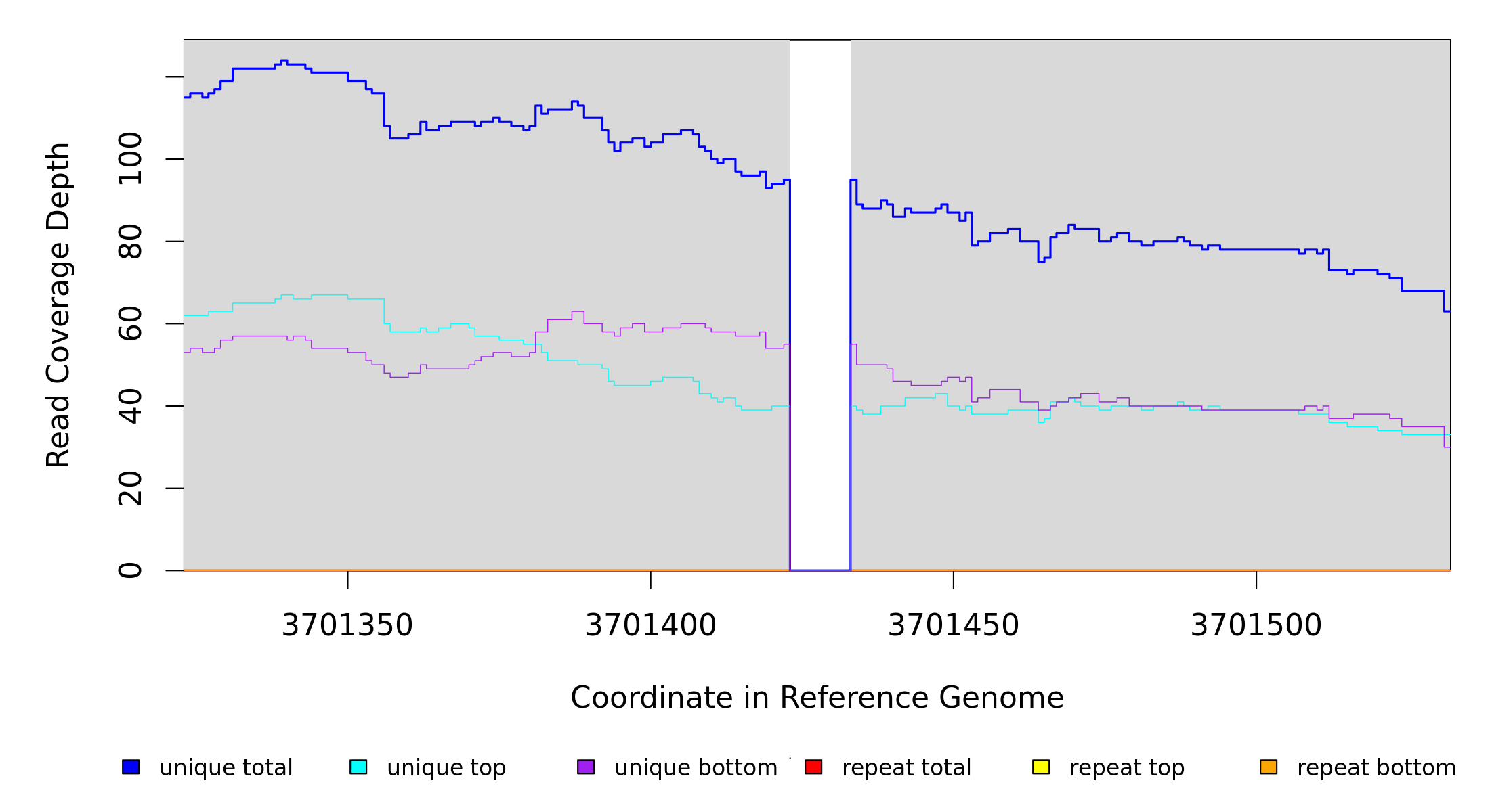 | seq id | start | end | size | ←reads | reads→ | gene | description | |||