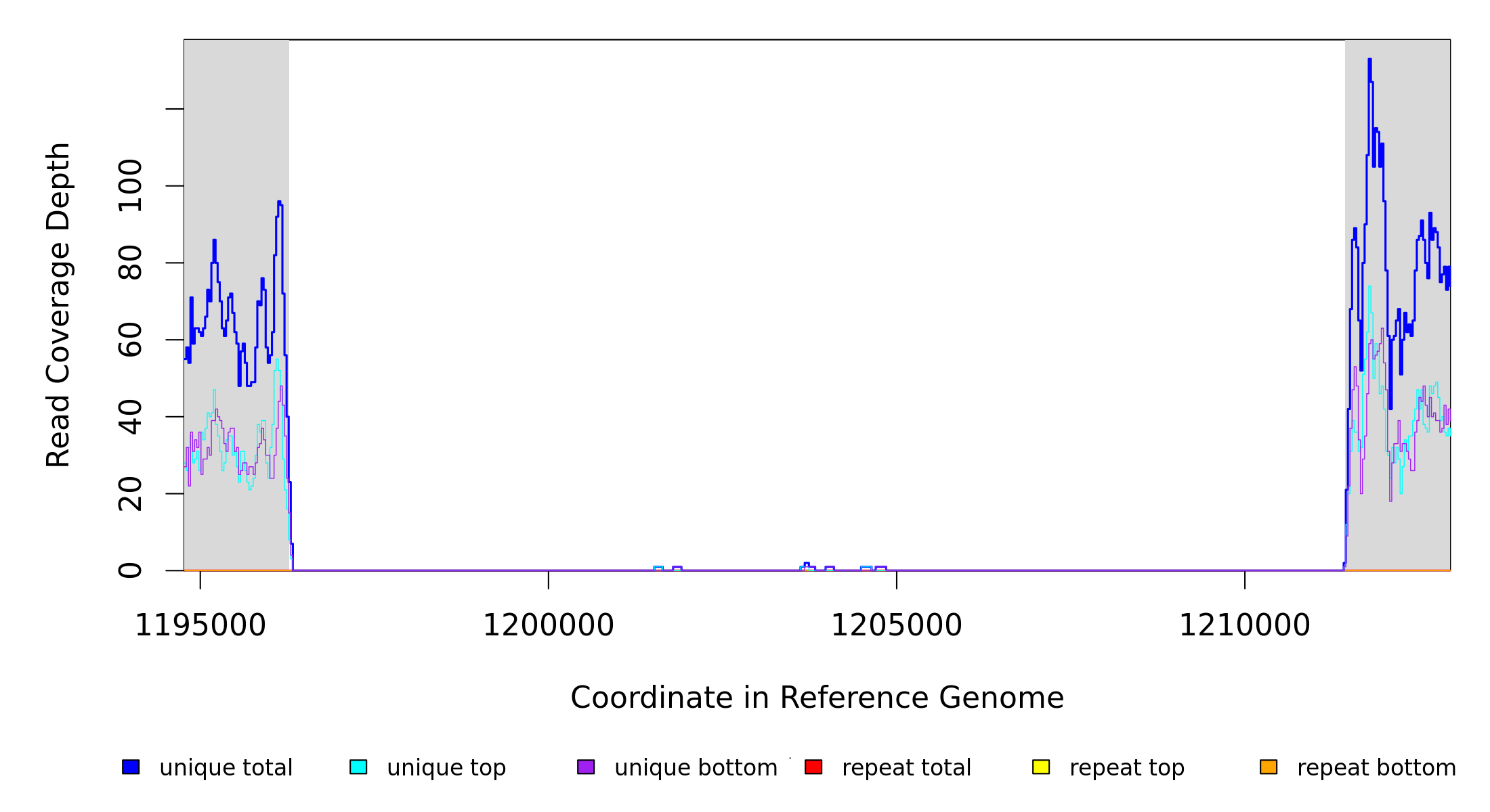 | seq id | start | end | size | ←reads | reads→ | gene | description | |||
