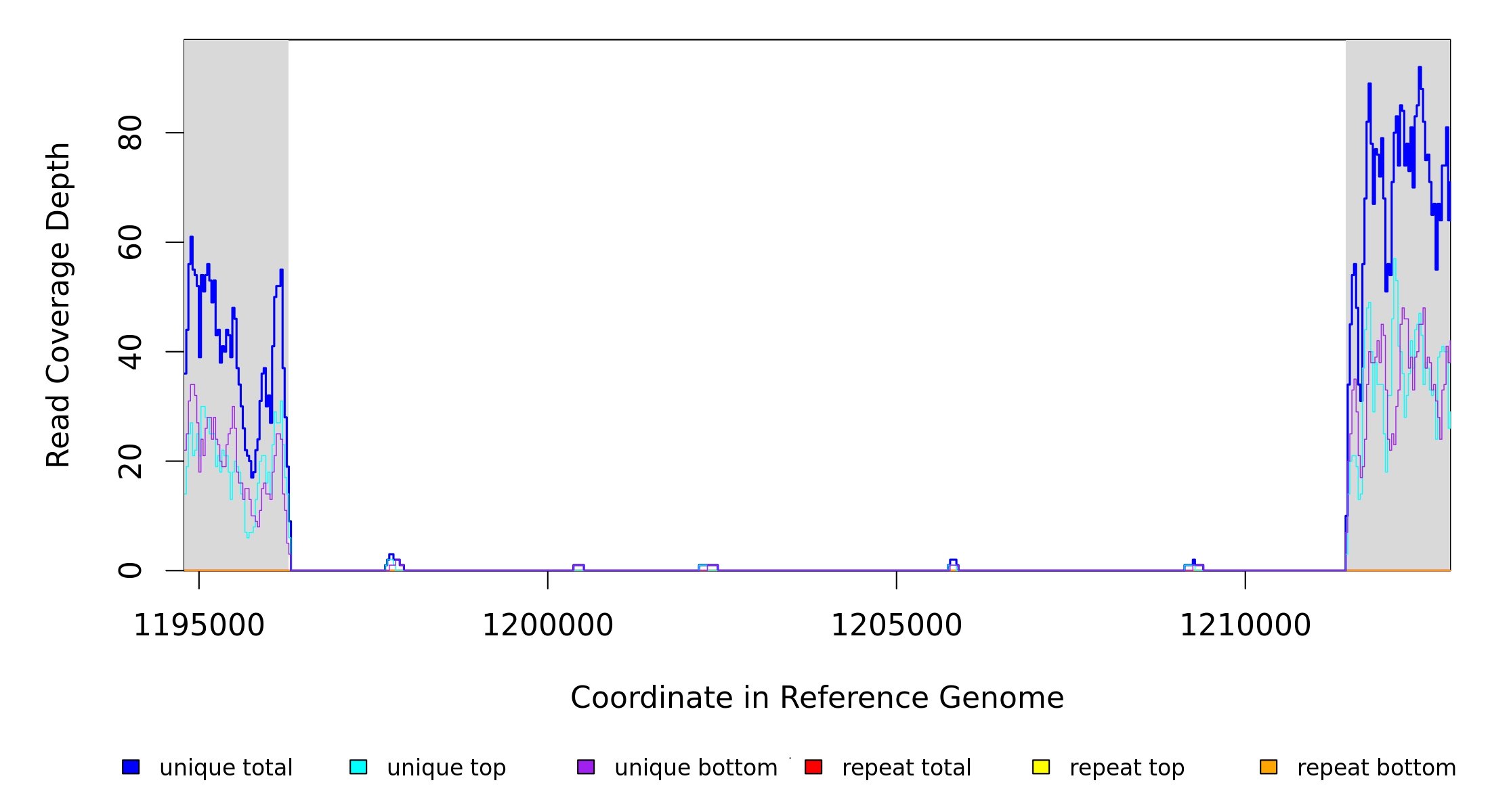 | seq id | start | end | size | ←reads | reads→ | gene | description | |||