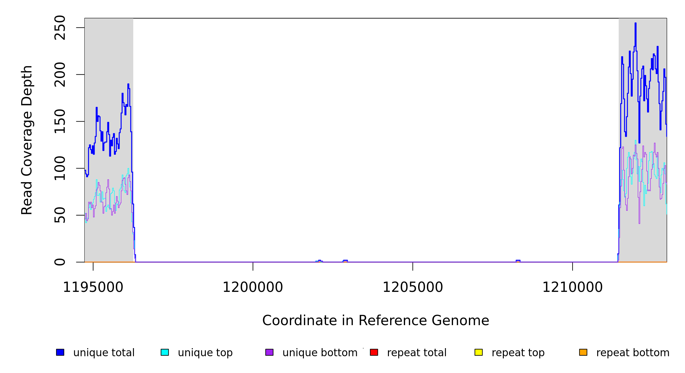 | seq id | start | end | size | ←reads | reads→ | gene | description | |||