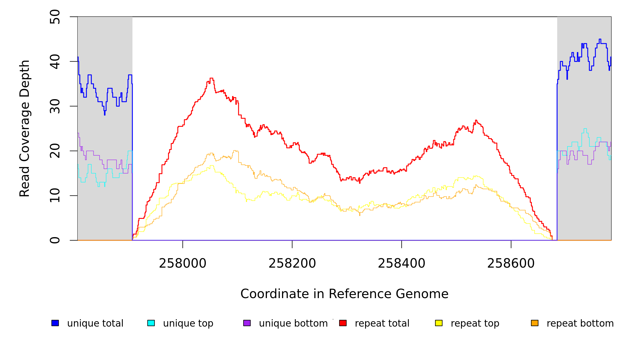 | seq id | start | end | size | ←reads | reads→ | gene | description | |||
