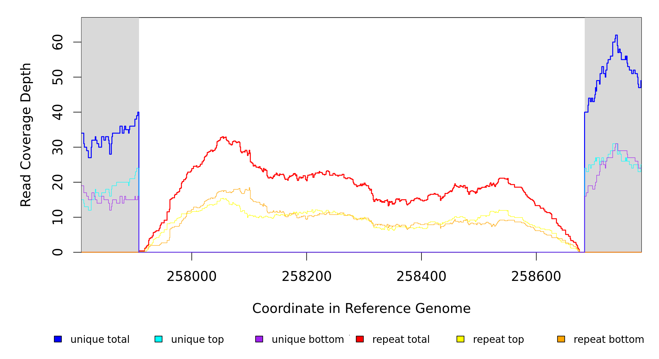 | seq id | start | end | size | ←reads | reads→ | gene | description | |||