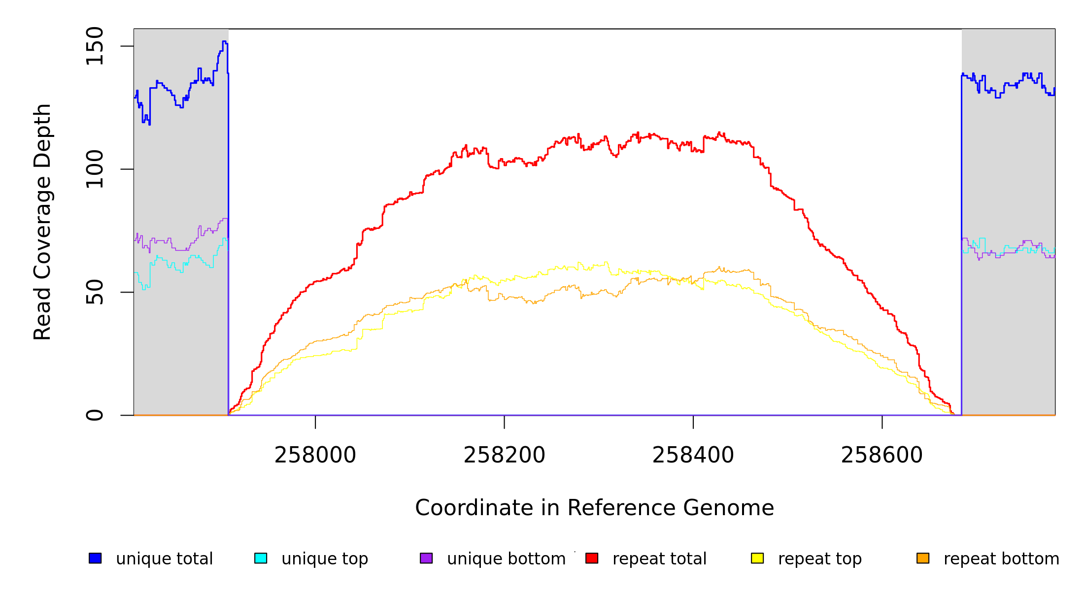 | seq id | start | end | size | ←reads | reads→ | gene | description | |||