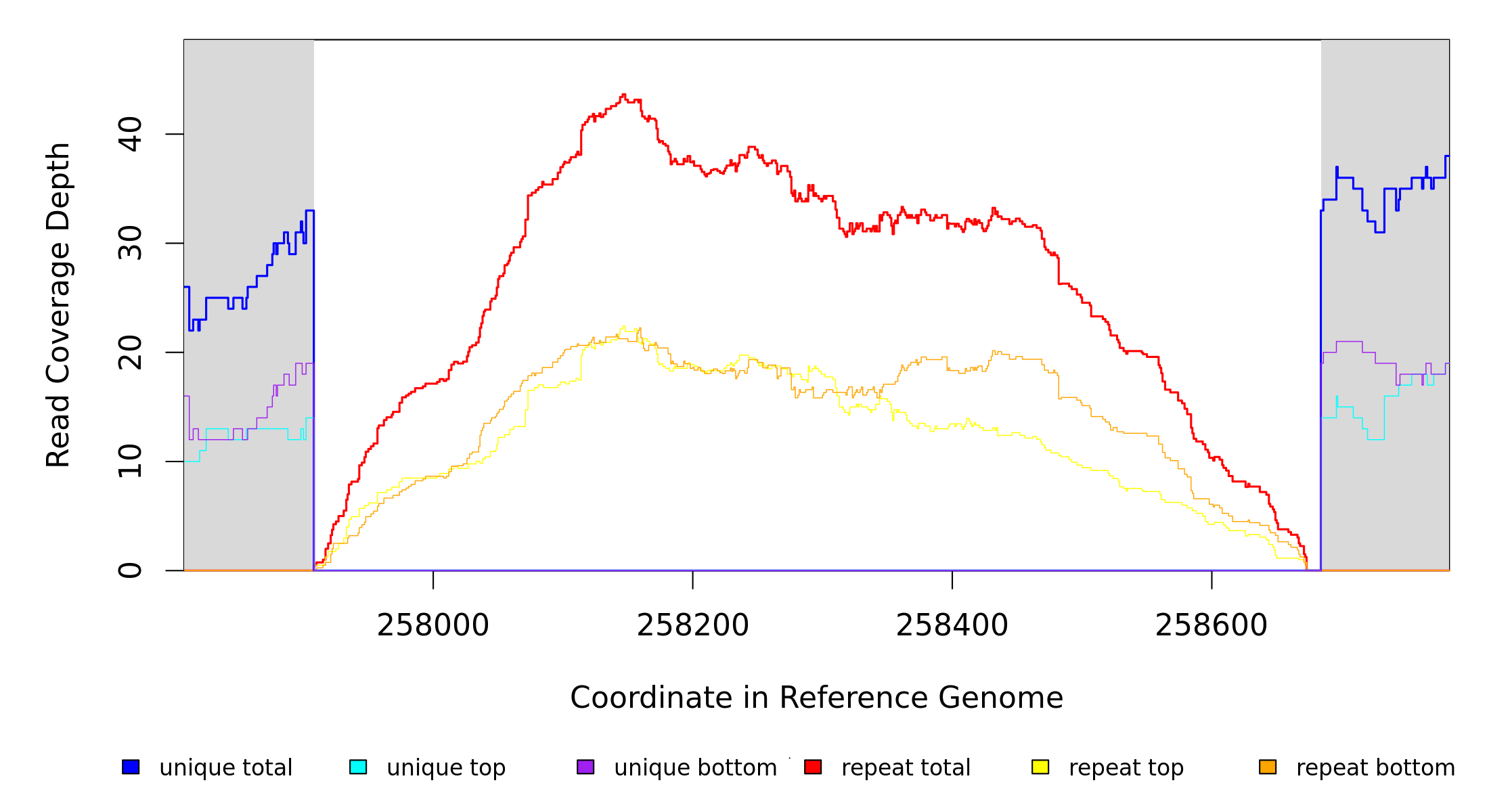 | seq id | start | end | size | ←reads | reads→ | gene | description | |||