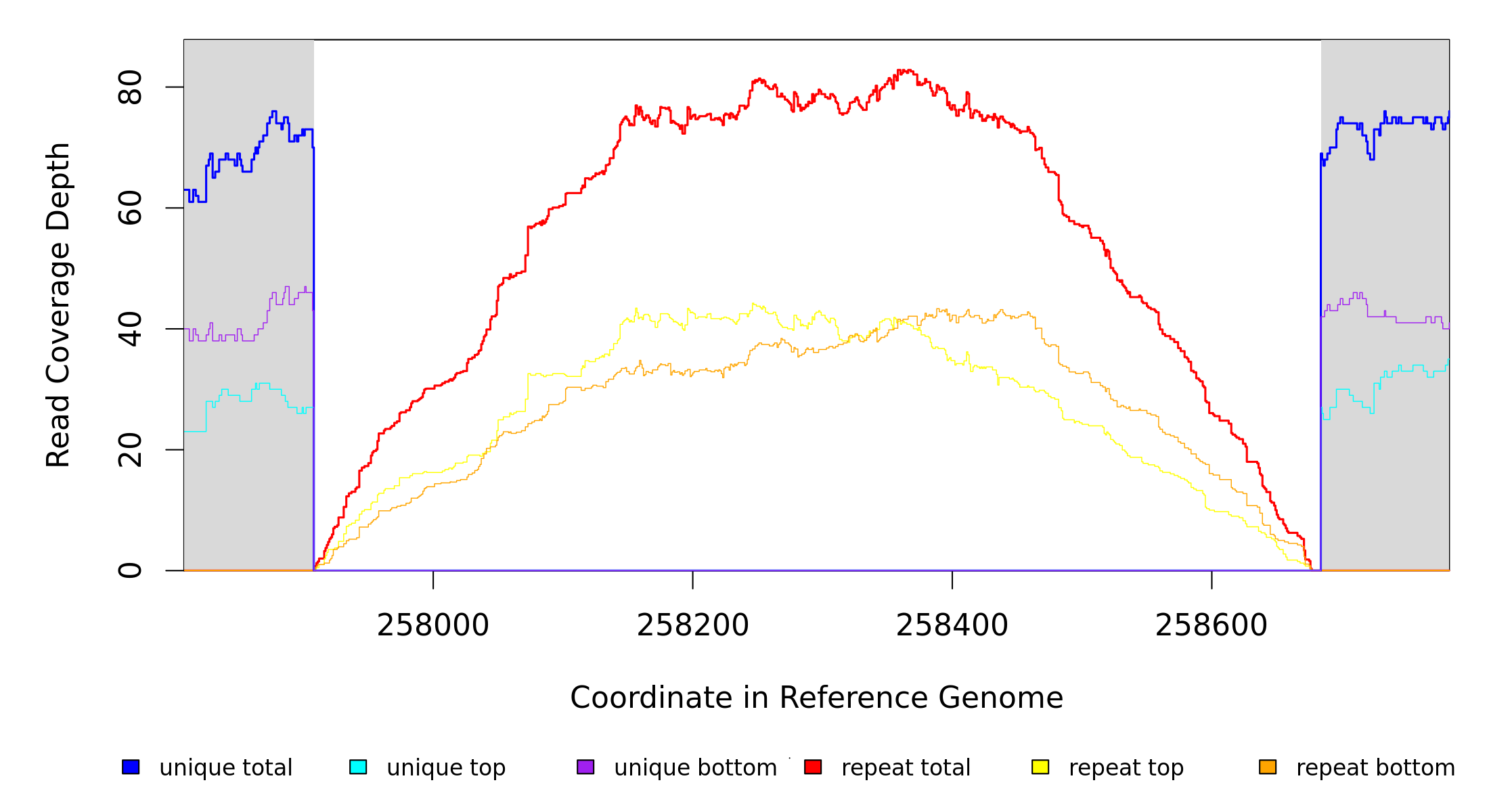 | seq id | start | end | size | ←reads | reads→ | gene | description | |||