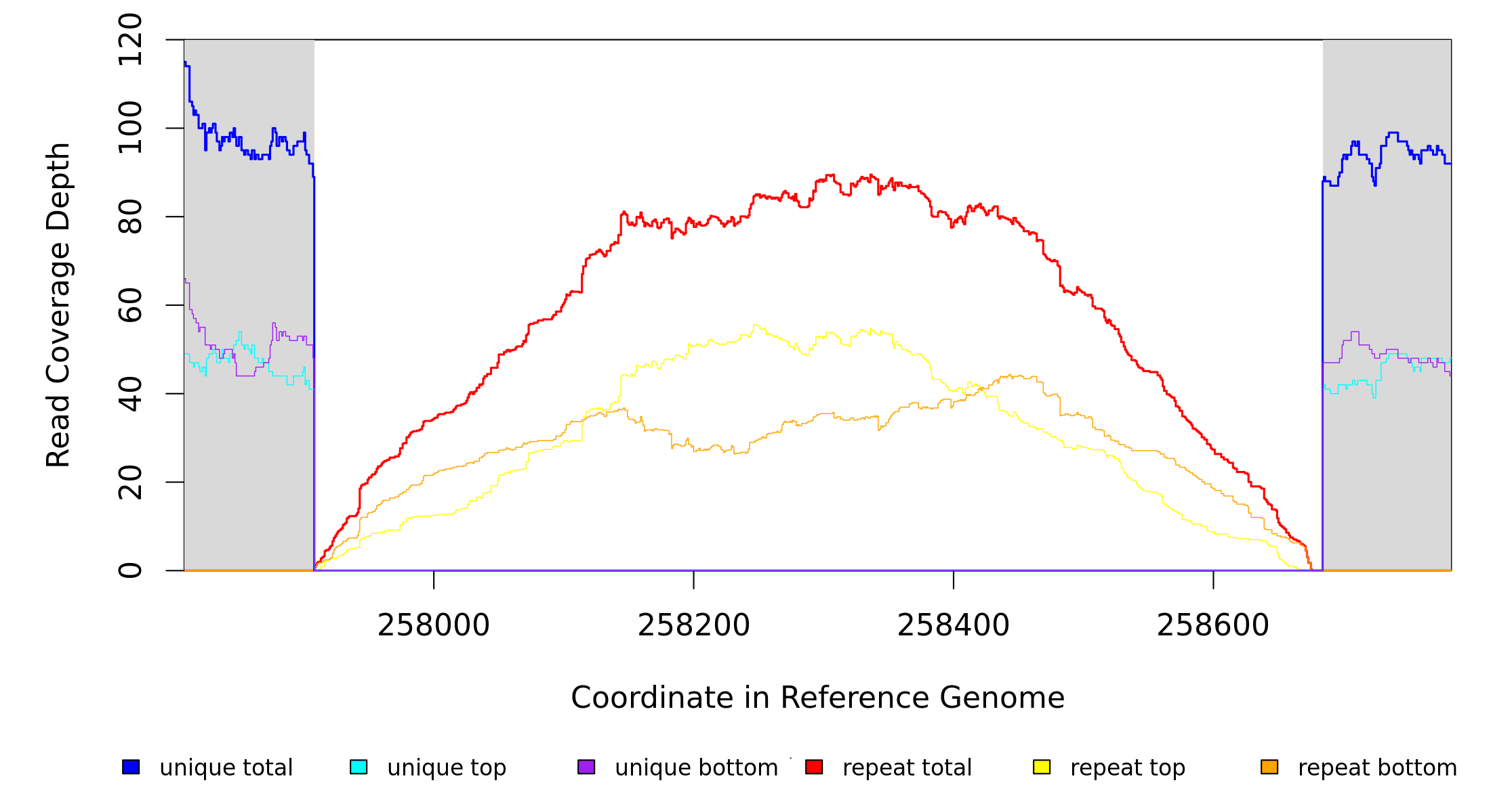 | seq id | start | end | size | ←reads | reads→ | gene | description | |||