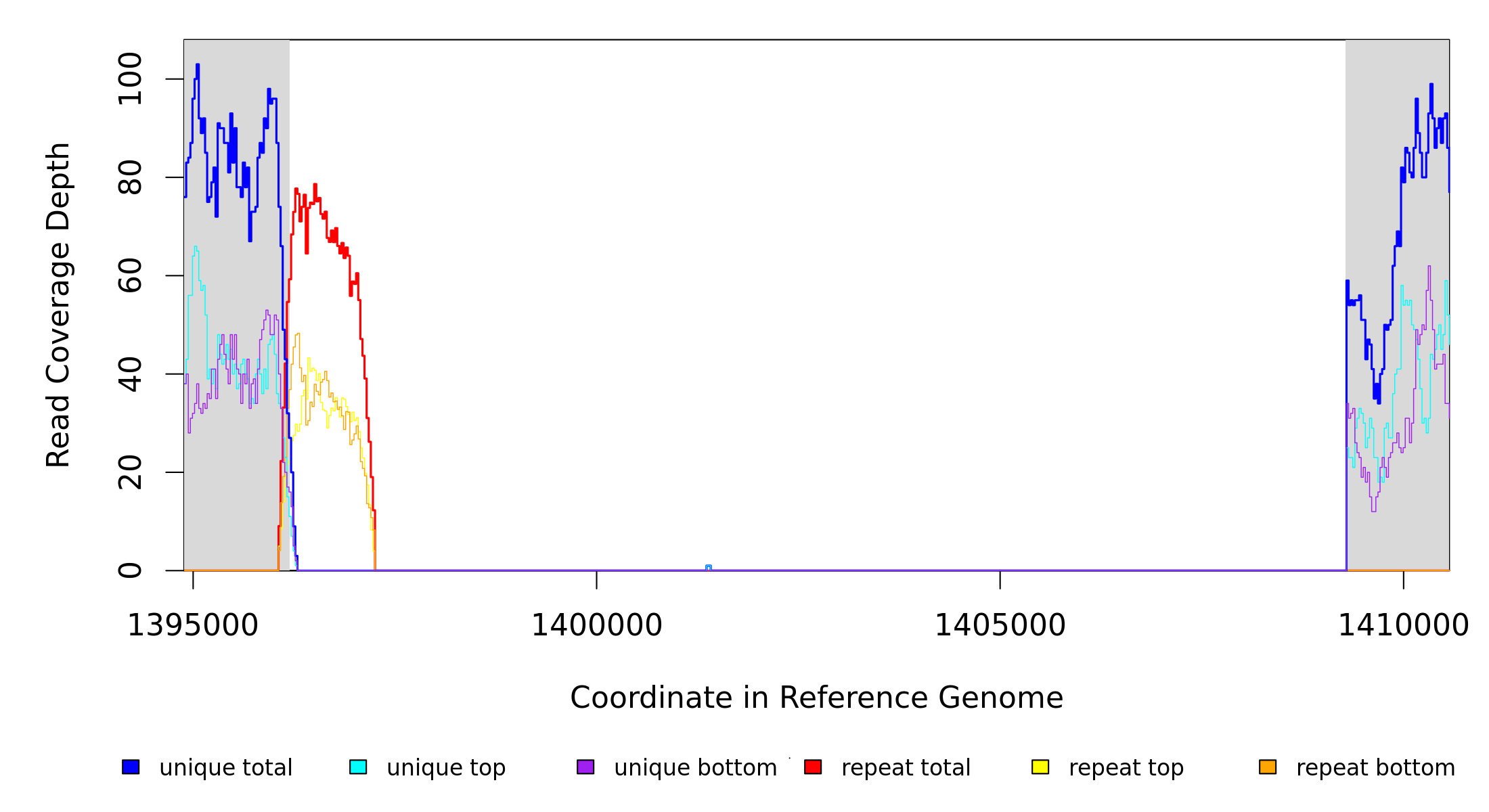 | seq id | start | end | size | ←reads | reads→ | gene | description | |||