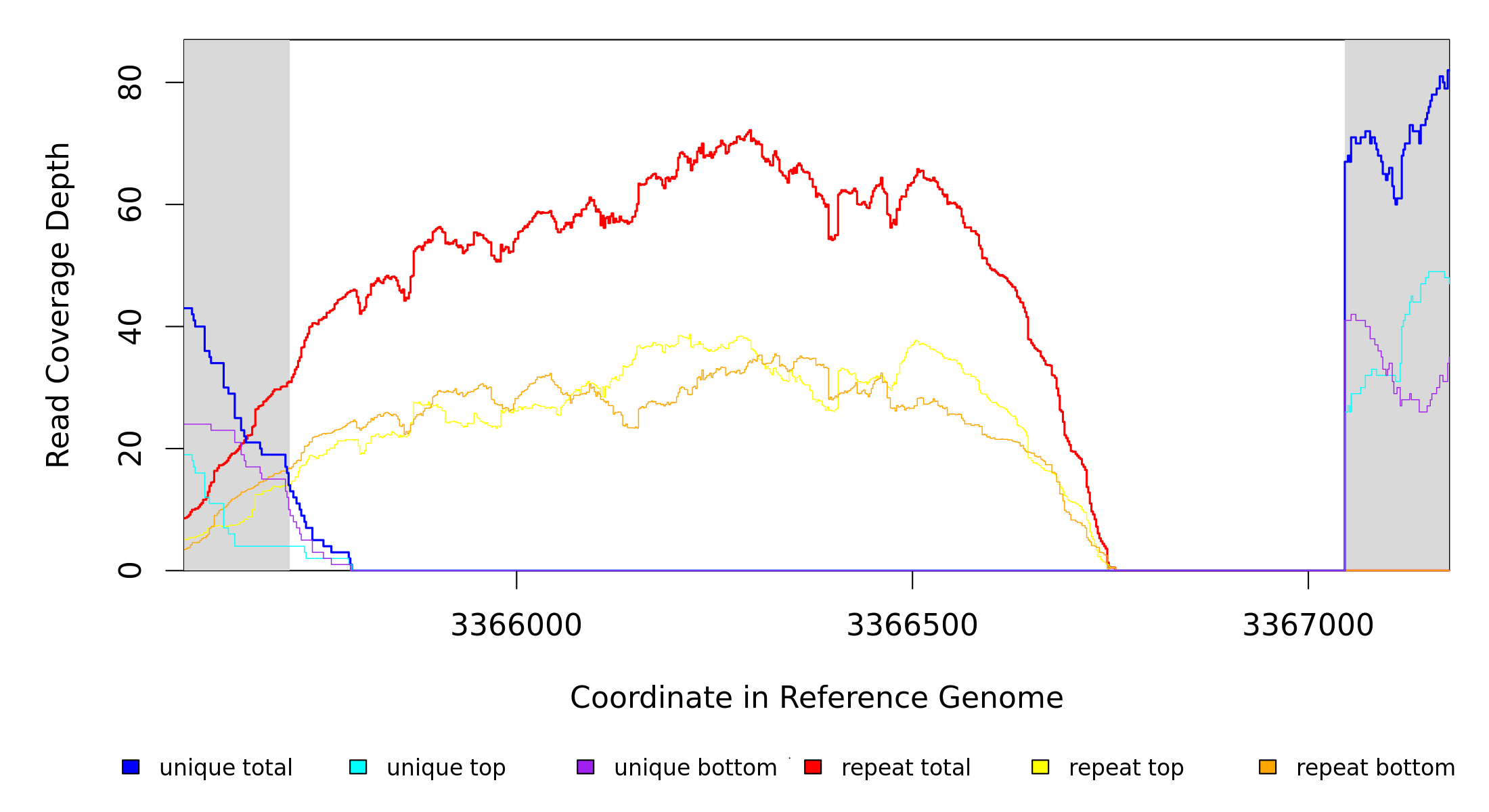 | seq id | start | end | size | ←reads | reads→ | gene | description | |||