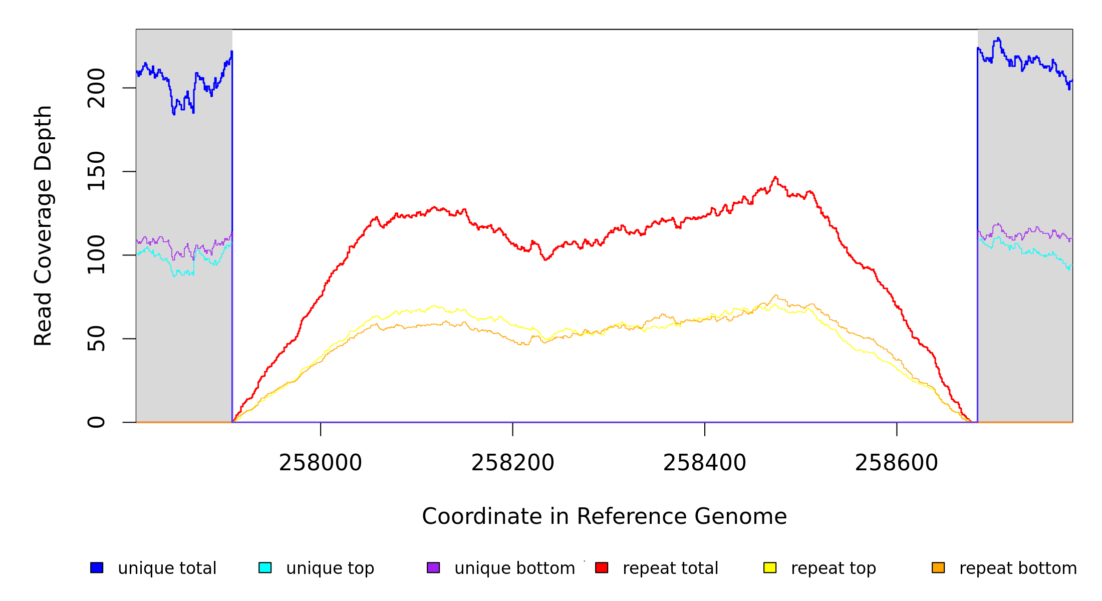 | seq id | start | end | size | ←reads | reads→ | gene | description | |||