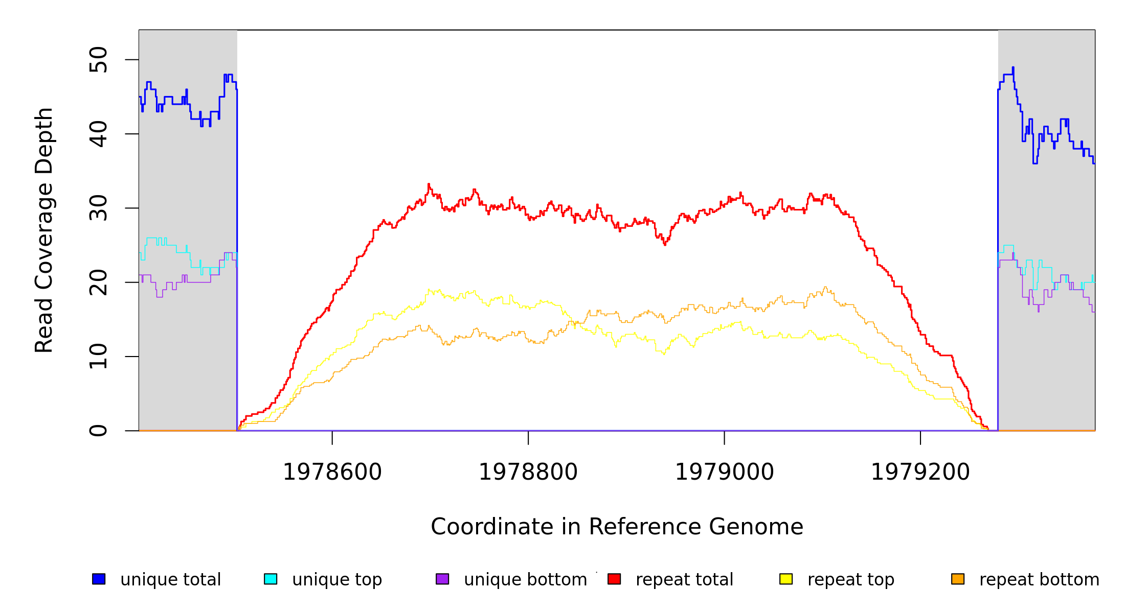 | seq id | start | end | size | ←reads | reads→ | gene | description | |||