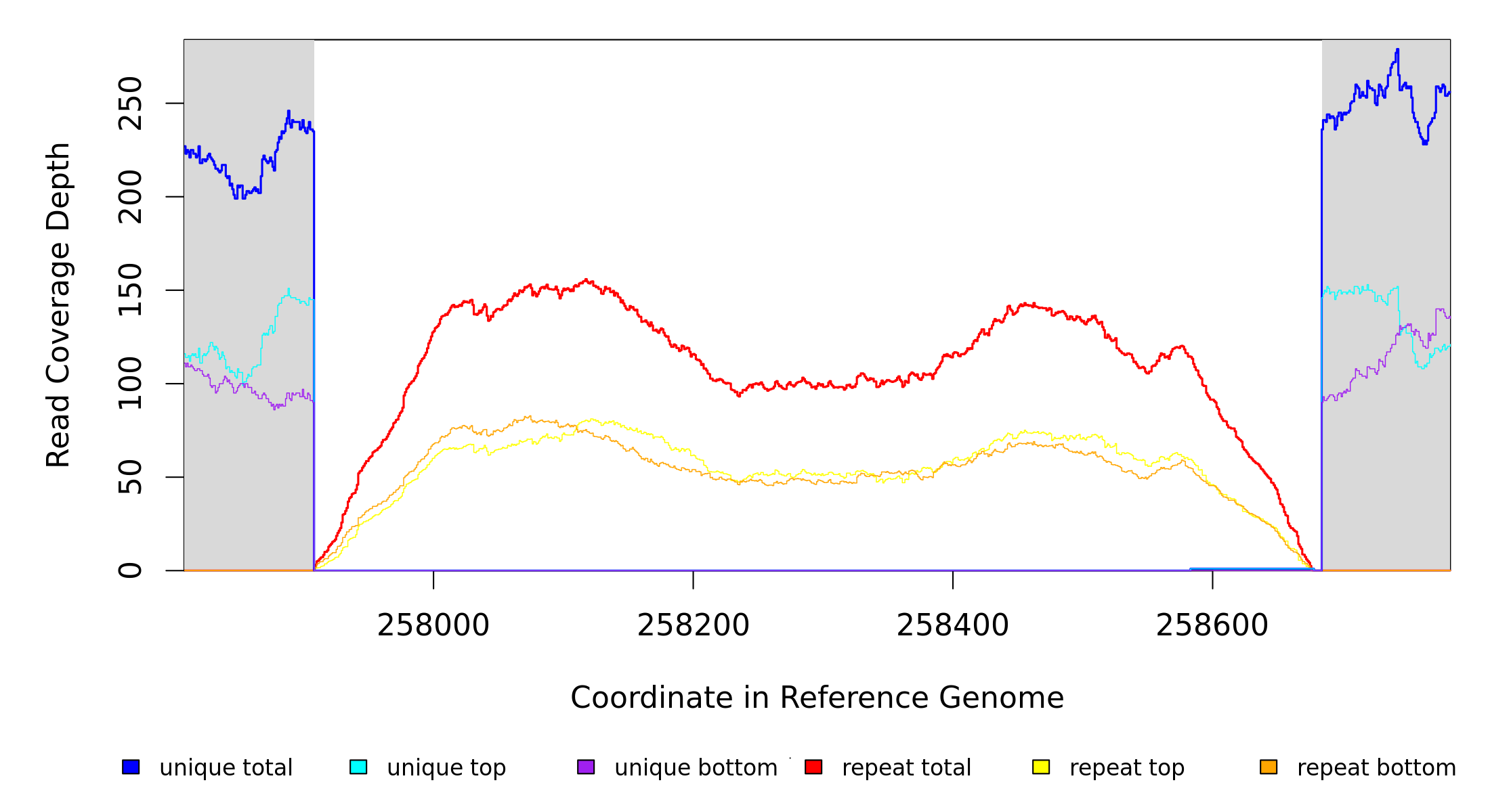 | seq id | start | end | size | ←reads | reads→ | gene | description | |||