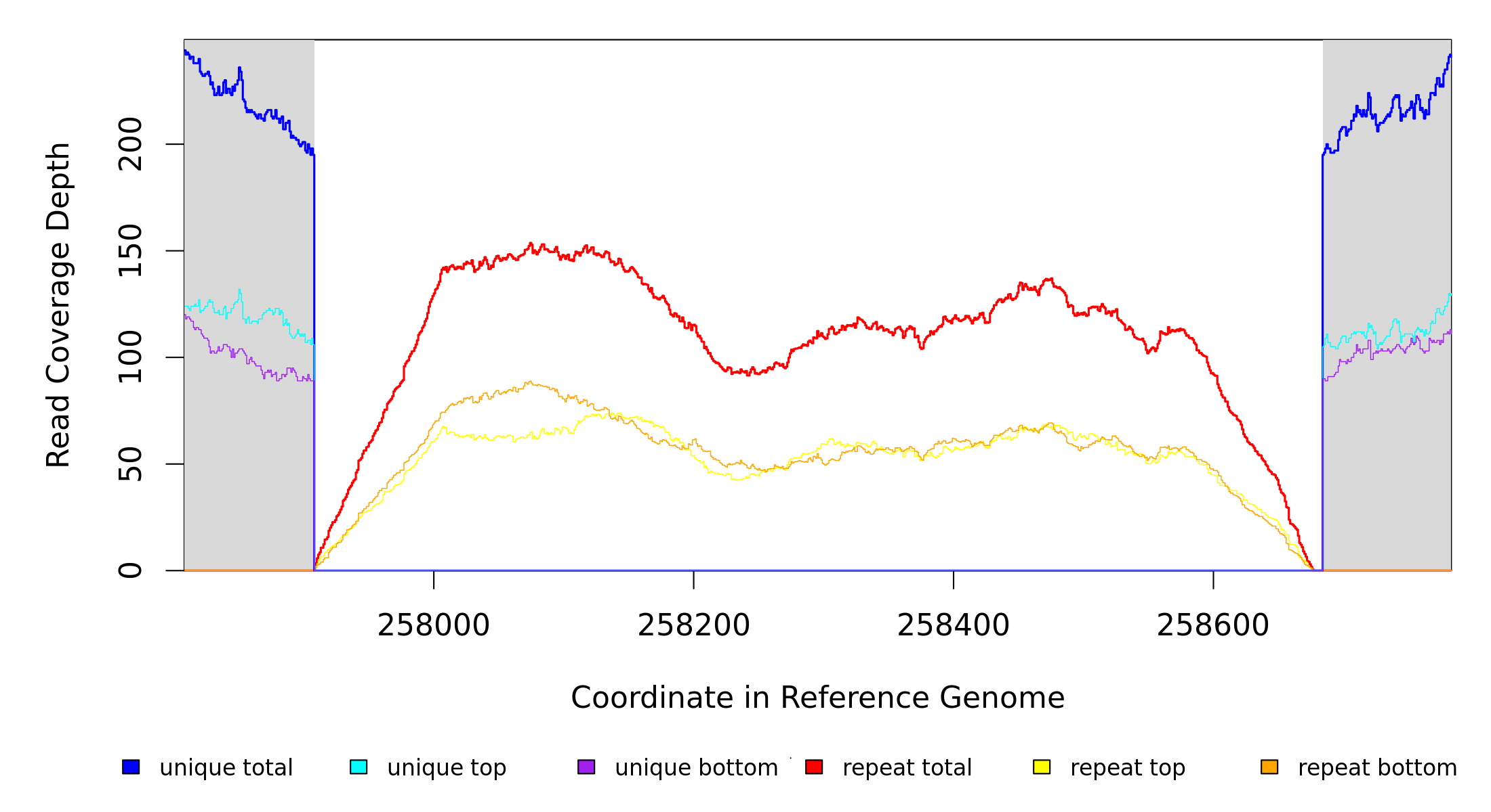 | seq id | start | end | size | ←reads | reads→ | gene | description | |||