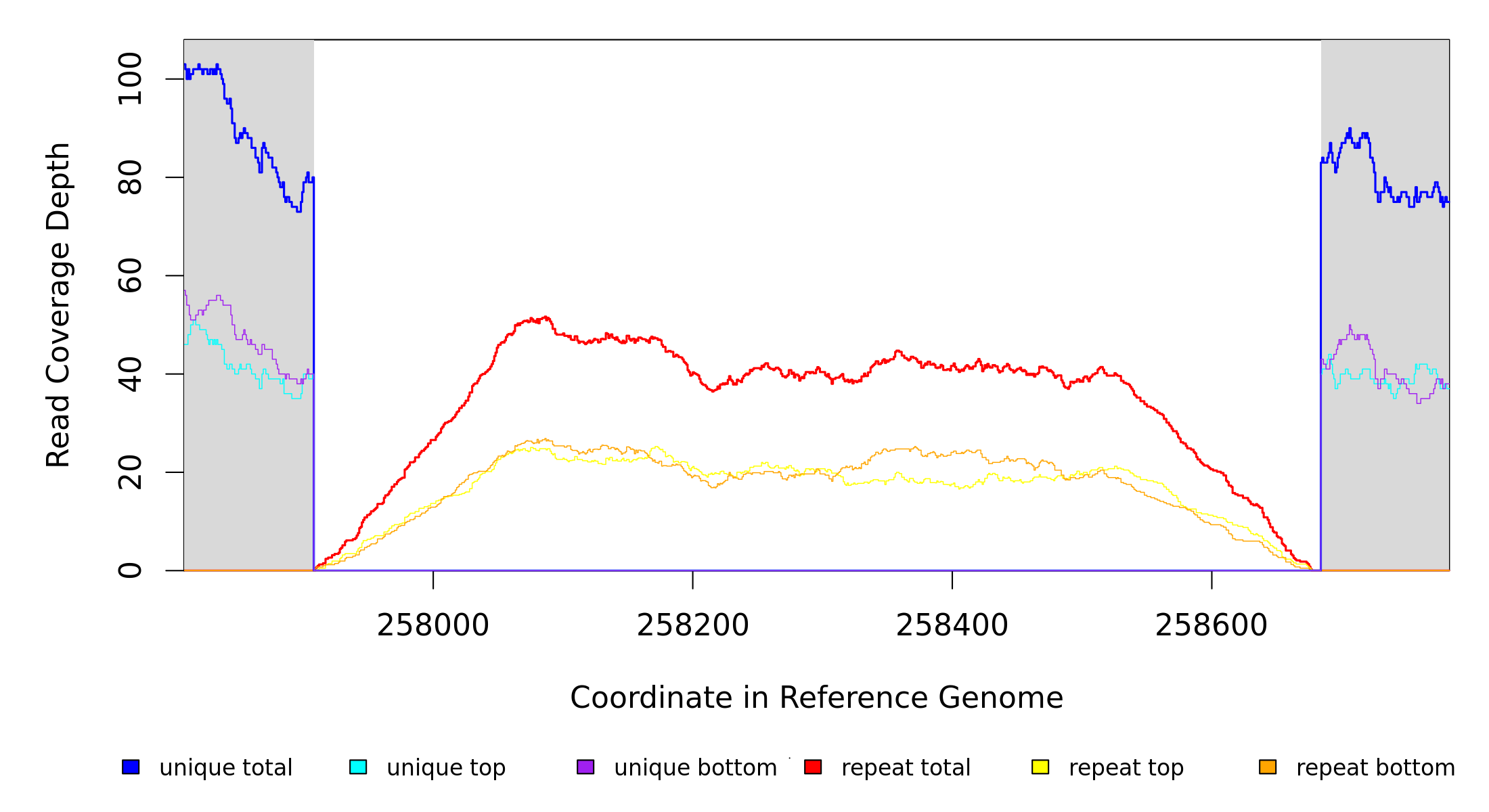 | seq id | start | end | size | ←reads | reads→ | gene | description | |||