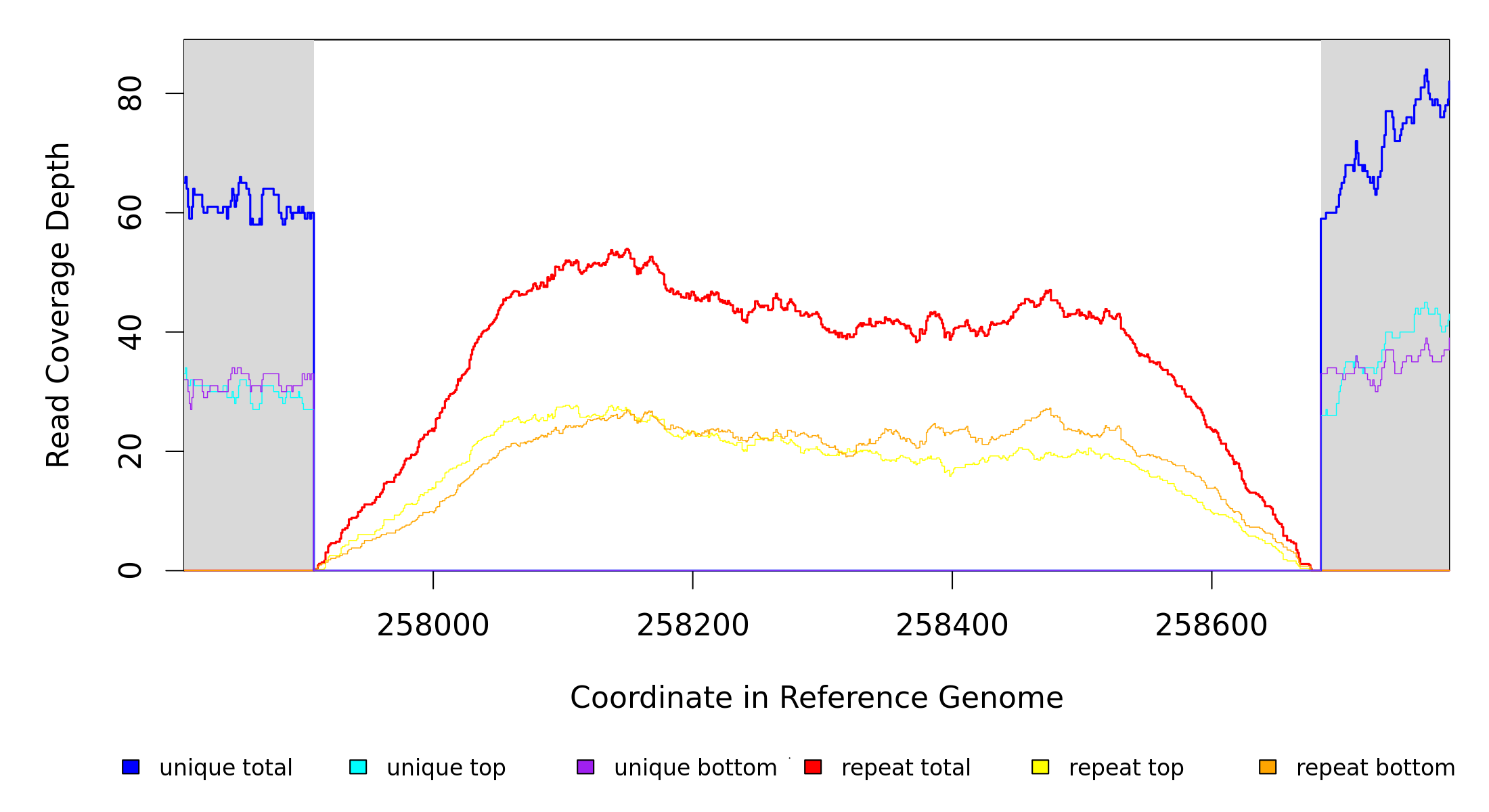 | seq id | start | end | size | ←reads | reads→ | gene | description | |||