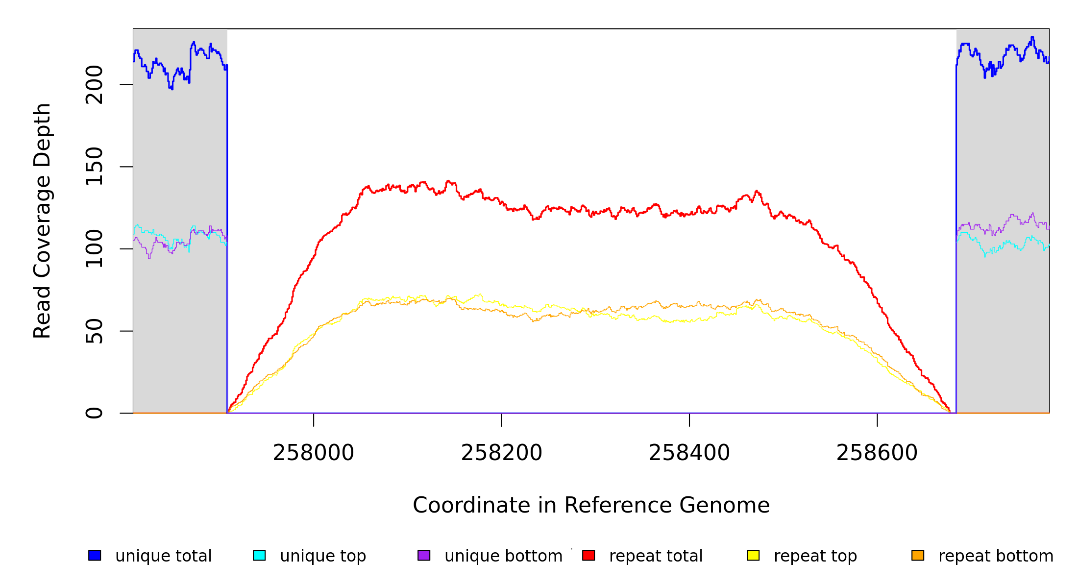 | seq id | start | end | size | ←reads | reads→ | gene | description | |||