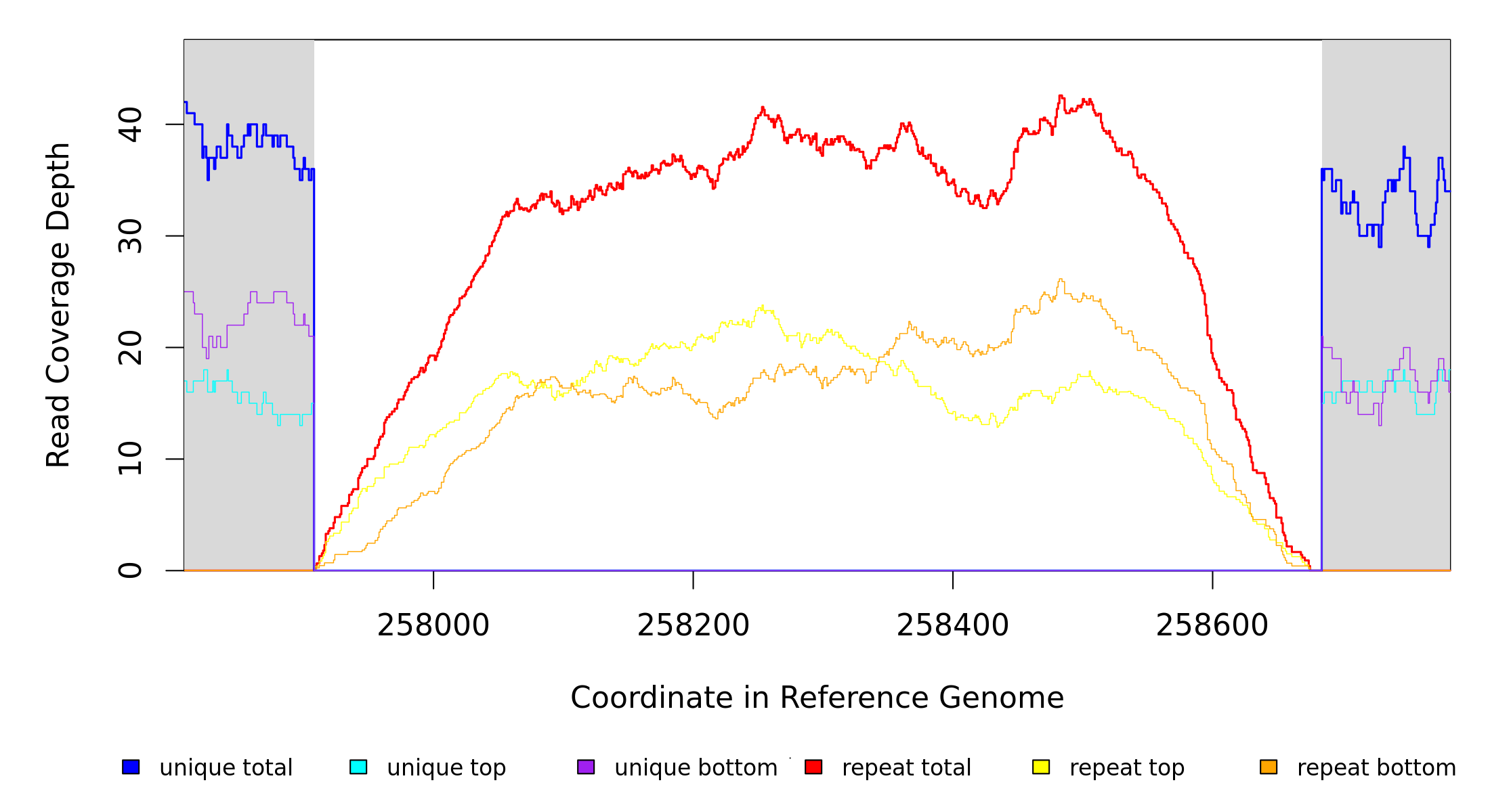| seq id | start | end | size | ←reads | reads→ | gene | description | |||