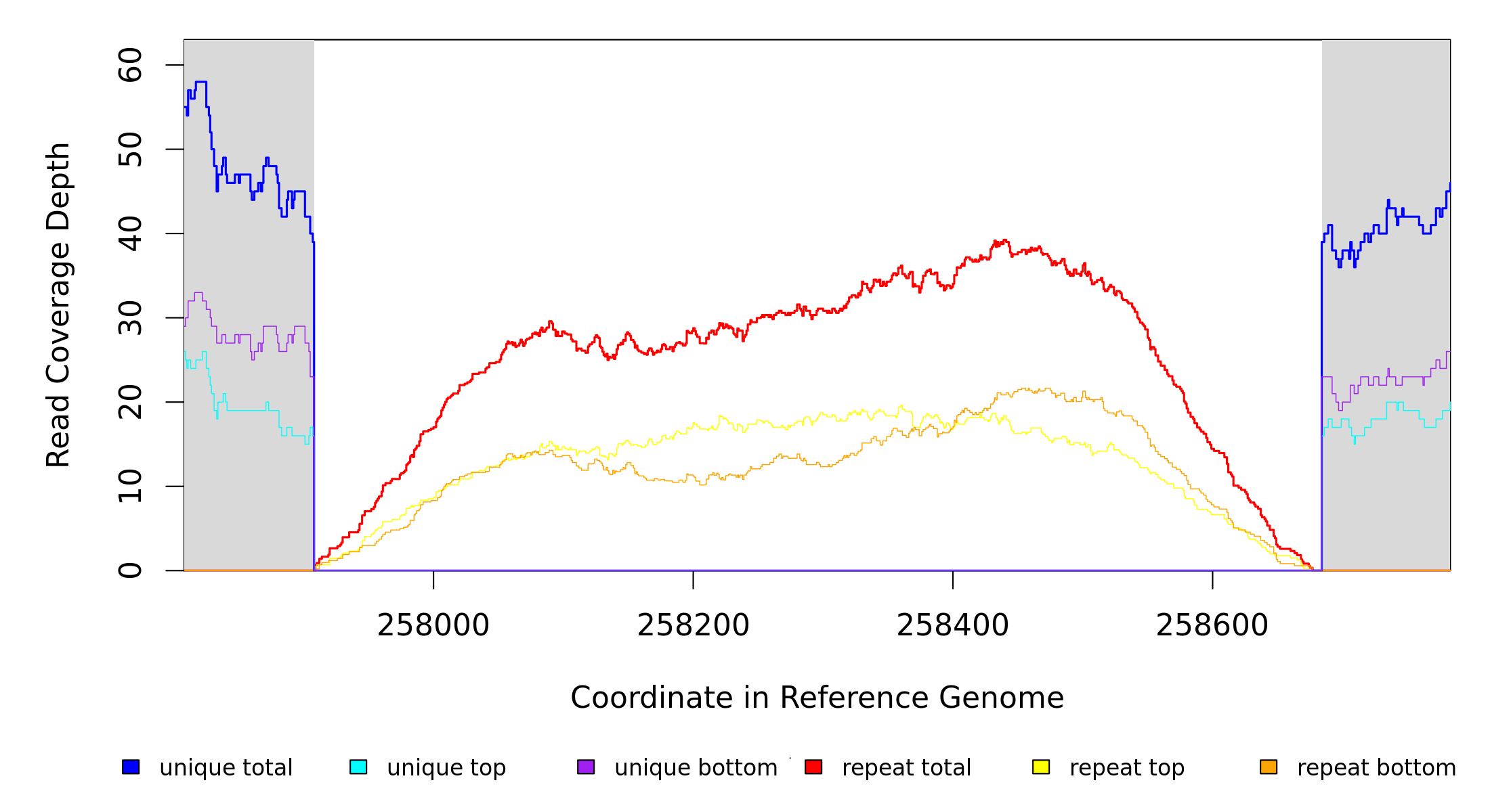 | seq id | start | end | size | ←reads | reads→ | gene | description | |||