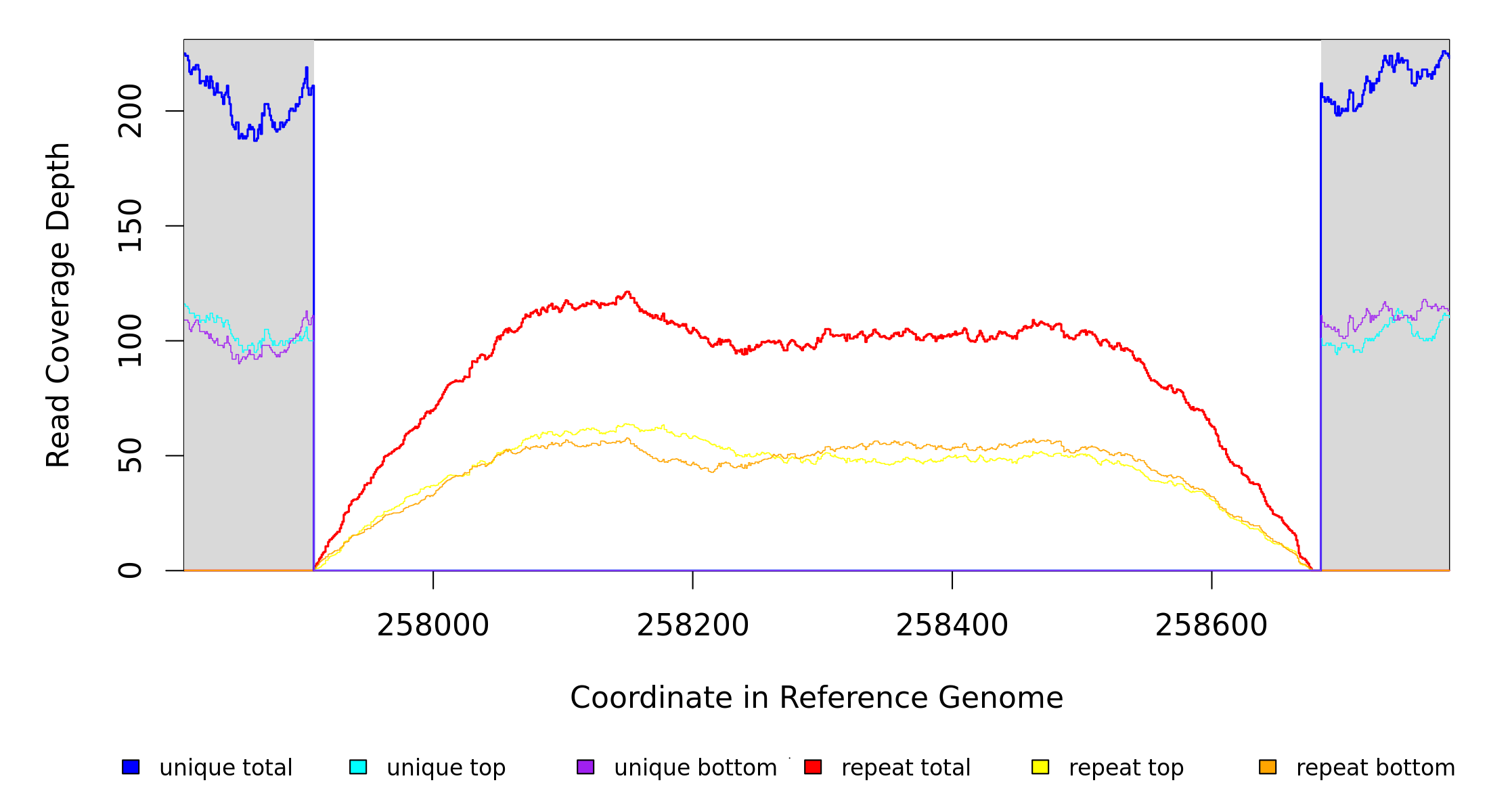 | seq id | start | end | size | ←reads | reads→ | gene | description | |||