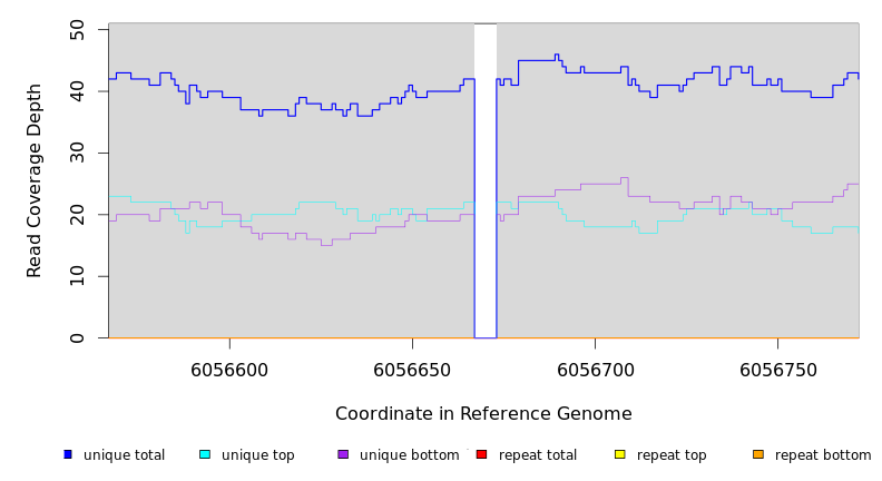 | seq id | start | end | size | ←reads | reads→ | gene | description | |||