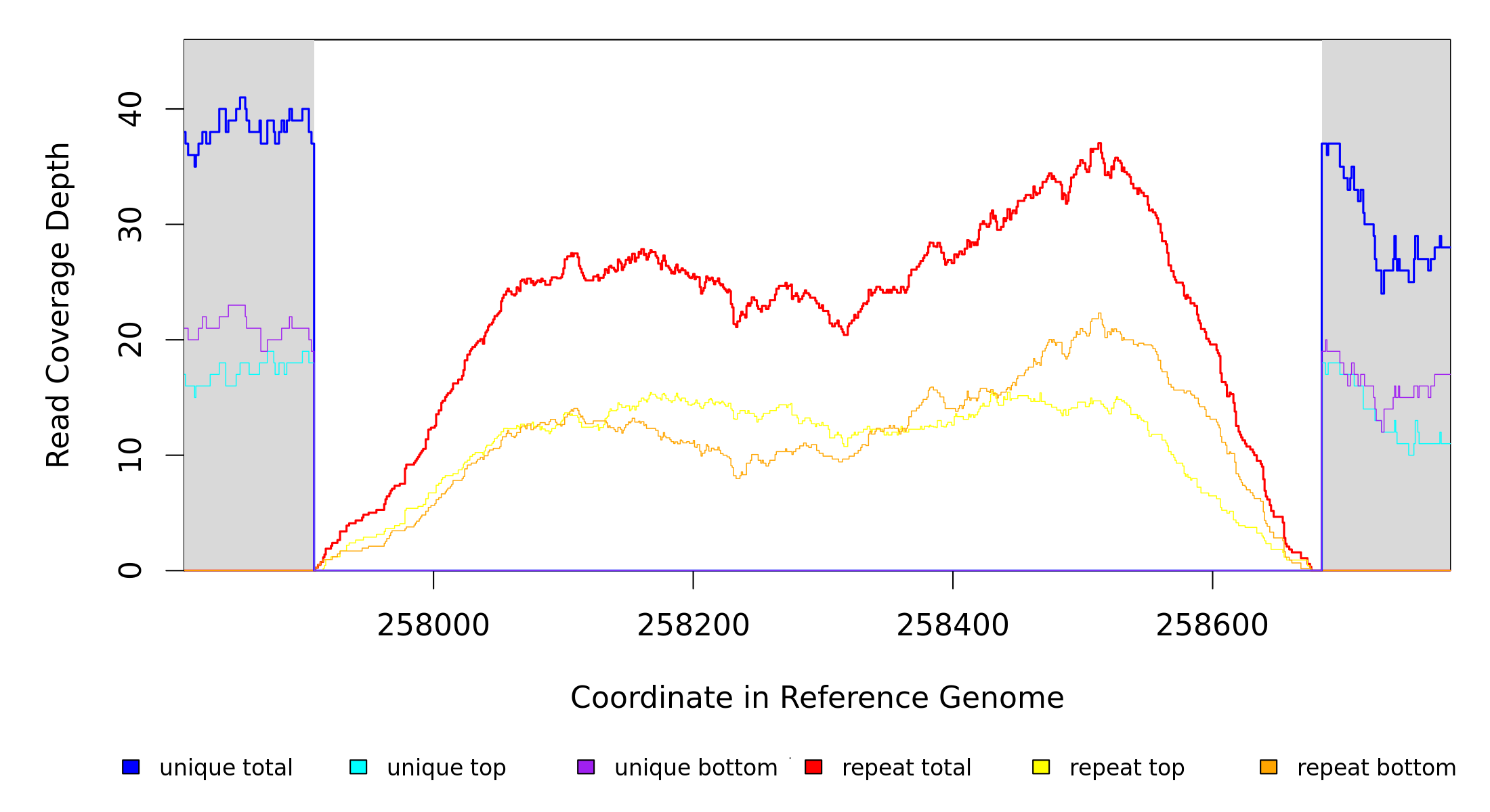 | seq id | start | end | size | ←reads | reads→ | gene | description | |||