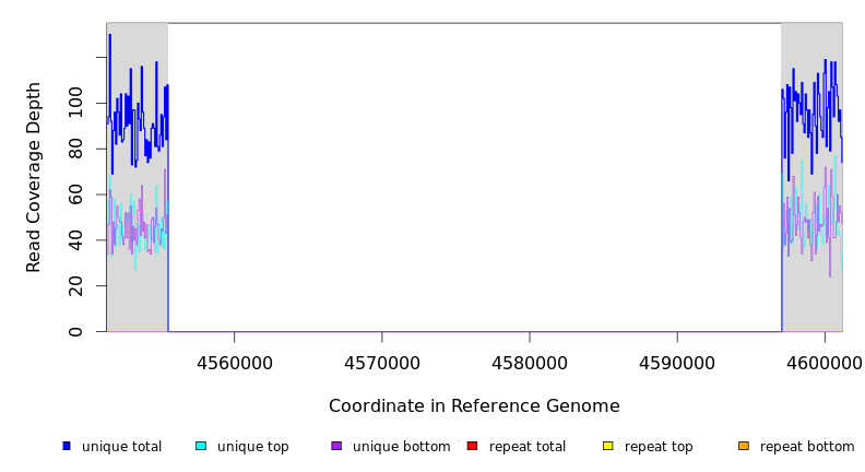| seq id | start | end | size | ←reads | reads→ | gene | description | |||