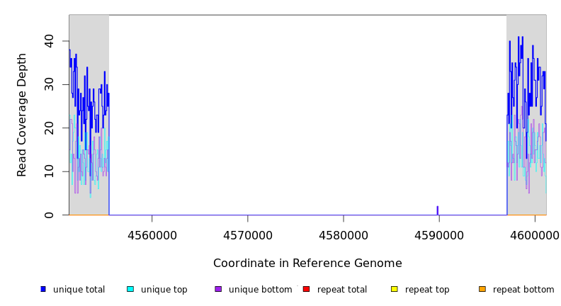 | seq id | start | end | size | ←reads | reads→ | gene | description | |||