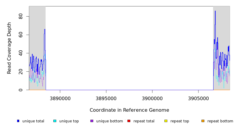 | seq id | start | end | size | ←reads | reads→ | gene | description | |||
