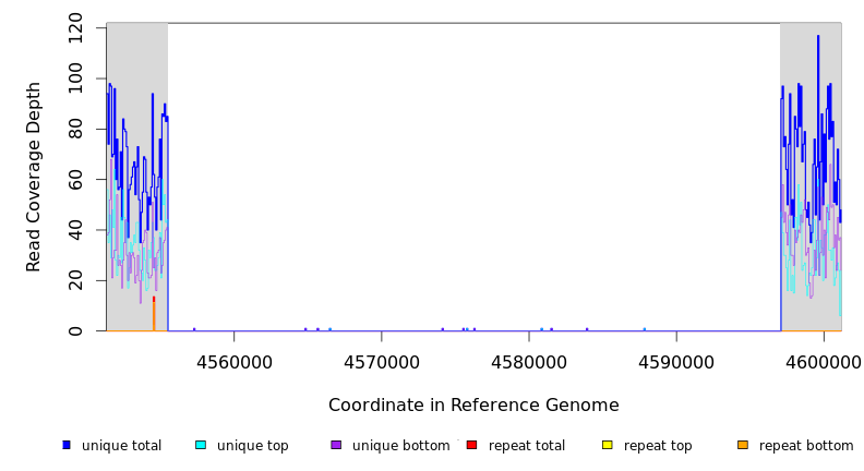 | seq id | start | end | size | ←reads | reads→ | gene | description | |||