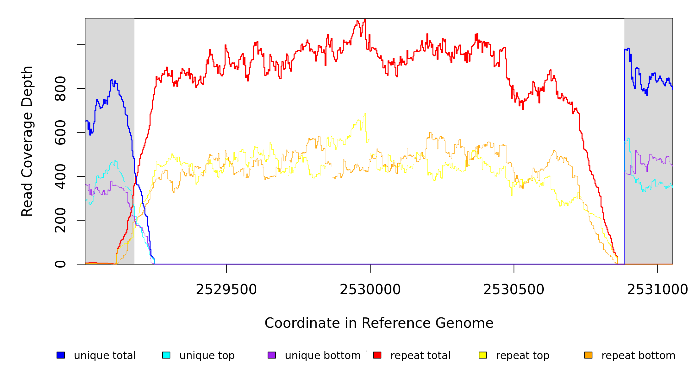 | seq id | start | end | size | ←reads | reads→ | gene | description | |||