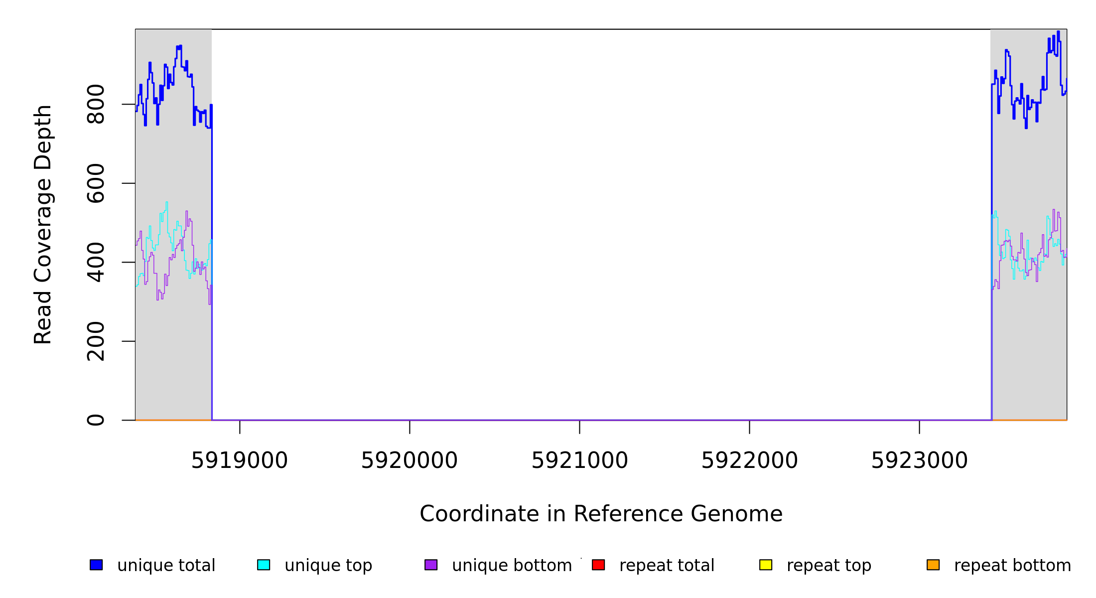 | seq id | start | end | size | ←reads | reads→ | gene | description | |||
