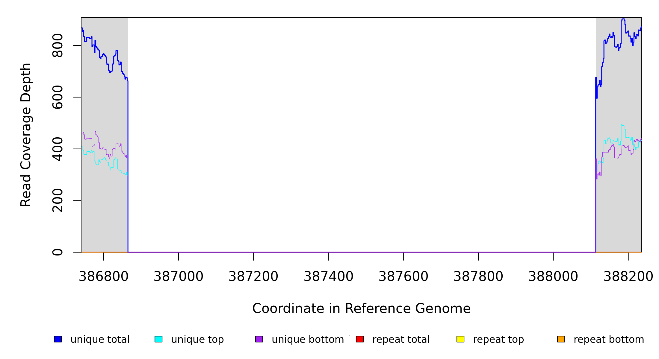 | seq id | start | end | size | ←reads | reads→ | gene | description | |||