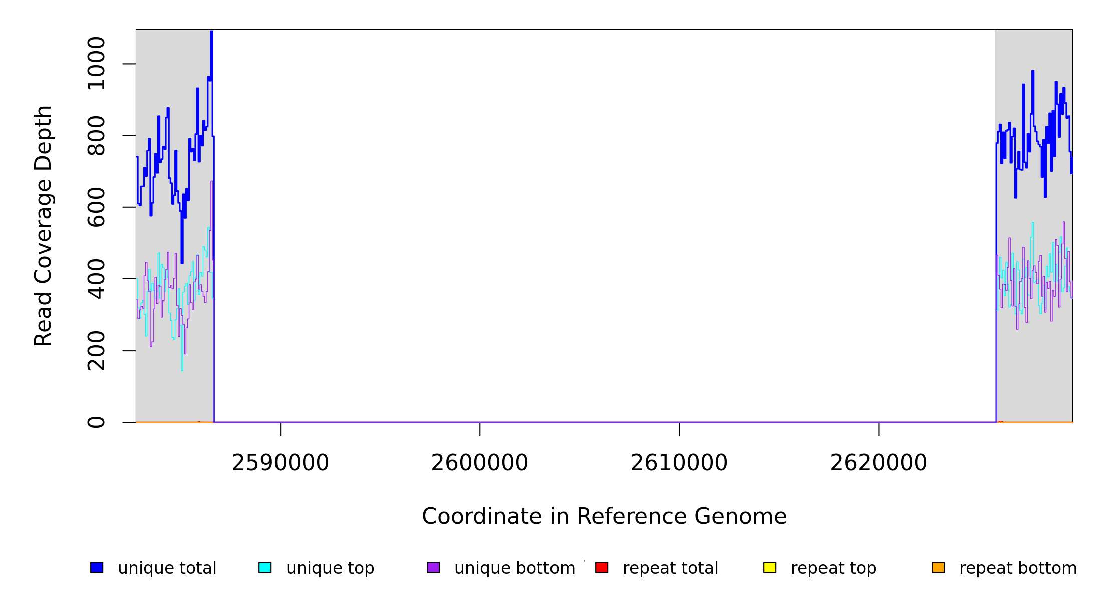 | seq id | start | end | size | ←reads | reads→ | gene | description | |||
