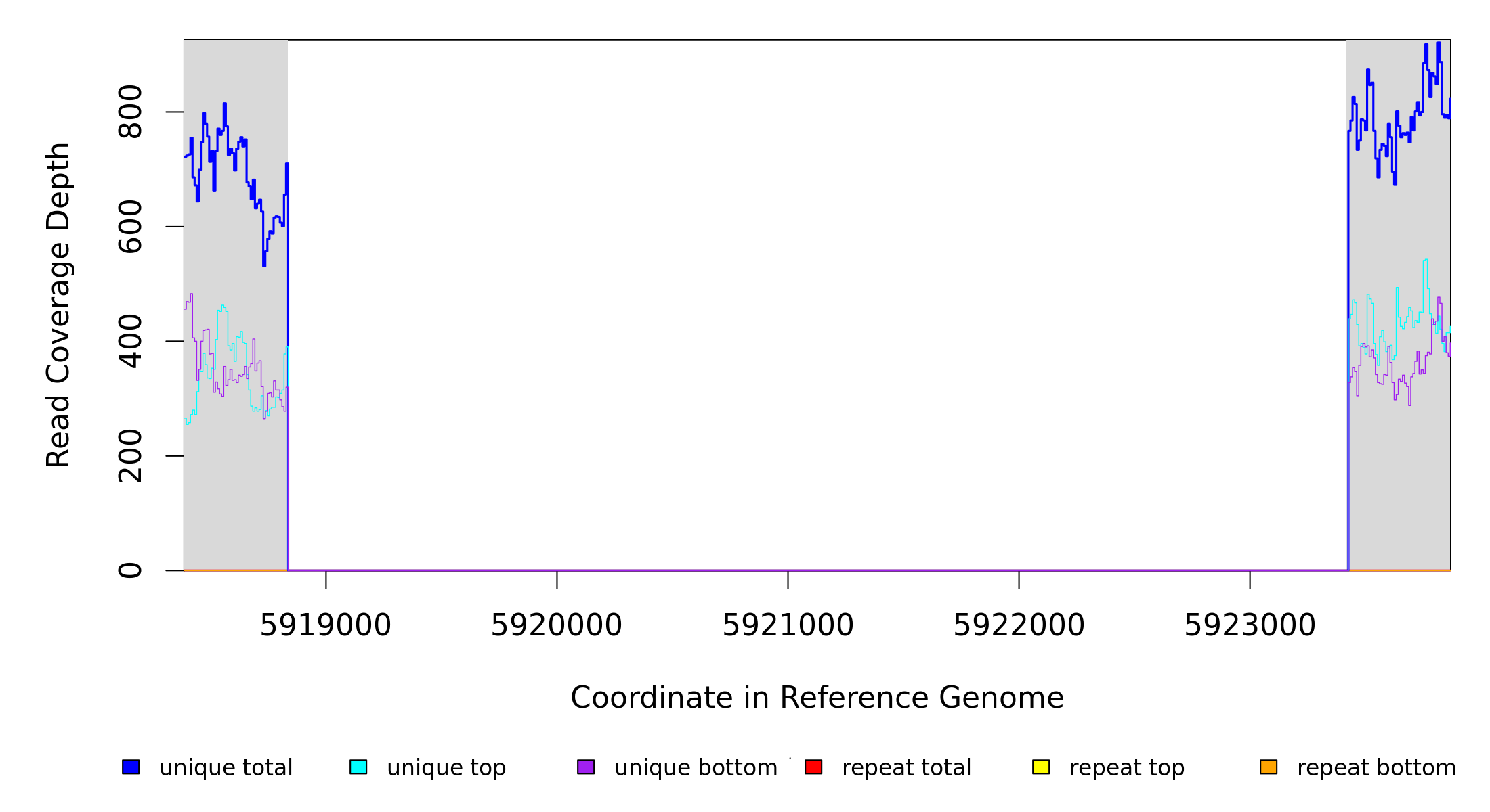 | seq id | start | end | size | ←reads | reads→ | gene | description | |||